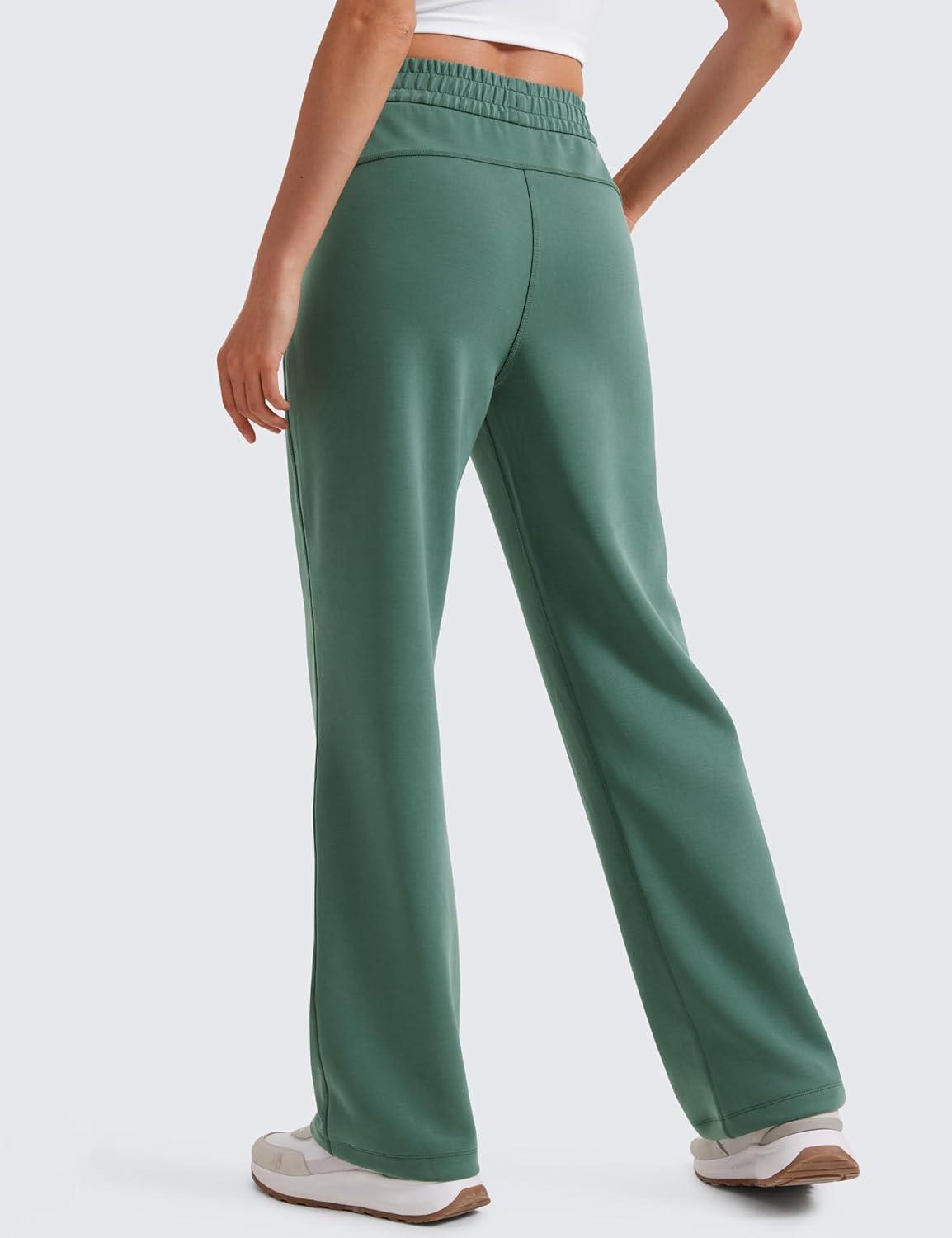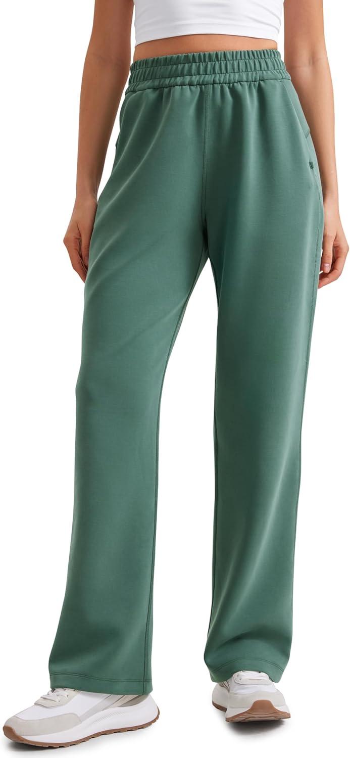 CRZ YOGA SoftAura Wide Leg Casual Sweatpants Women 29″/31″ – Modal Lounge Travel Casual Pants with Pockets(Dark Forest Green)