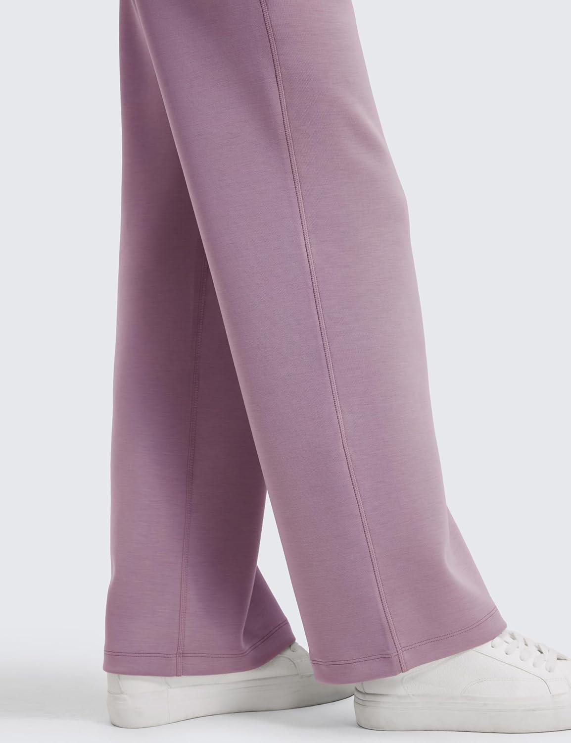 CRZ YOGA SoftAura Wide Leg Casual Sweatpants Women 29″/31″ – Modal Lounge Travel Casual Pants with Pockets(Light Lavender)