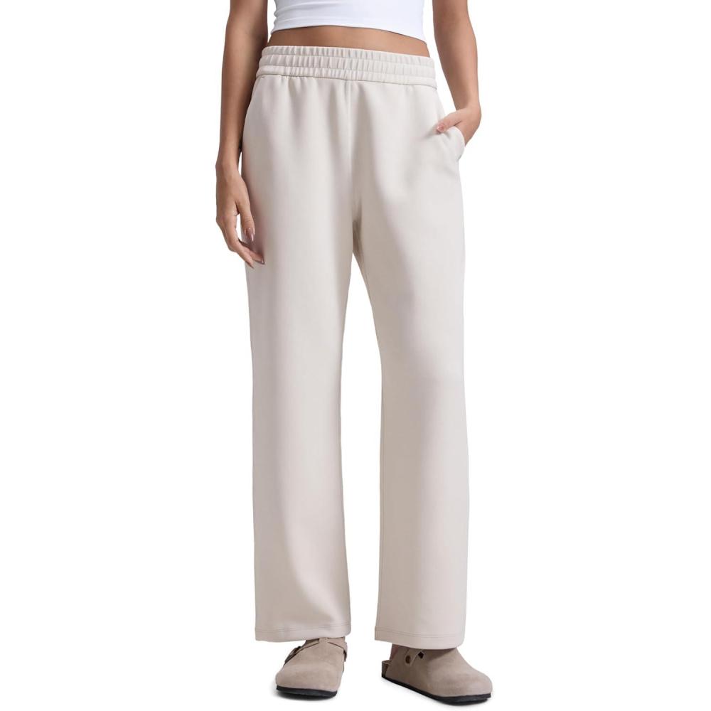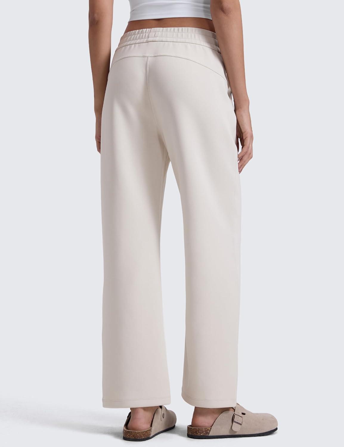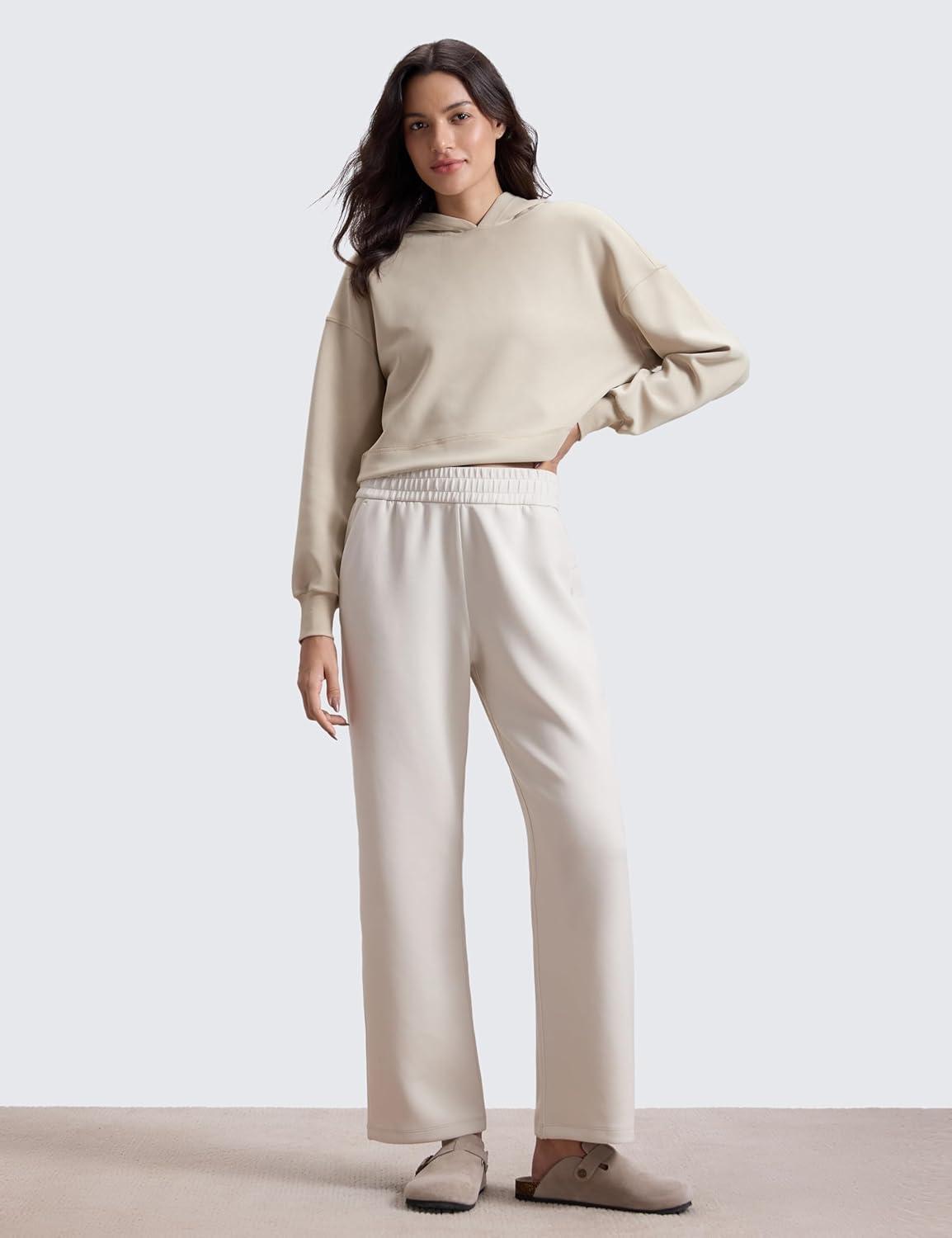 CRZ YOGA SoftAura Wide Leg Casual Sweatpants Women 29″/31″ – Modal Lounge Travel Casual Pants with Pockets(Milky White (Bone))