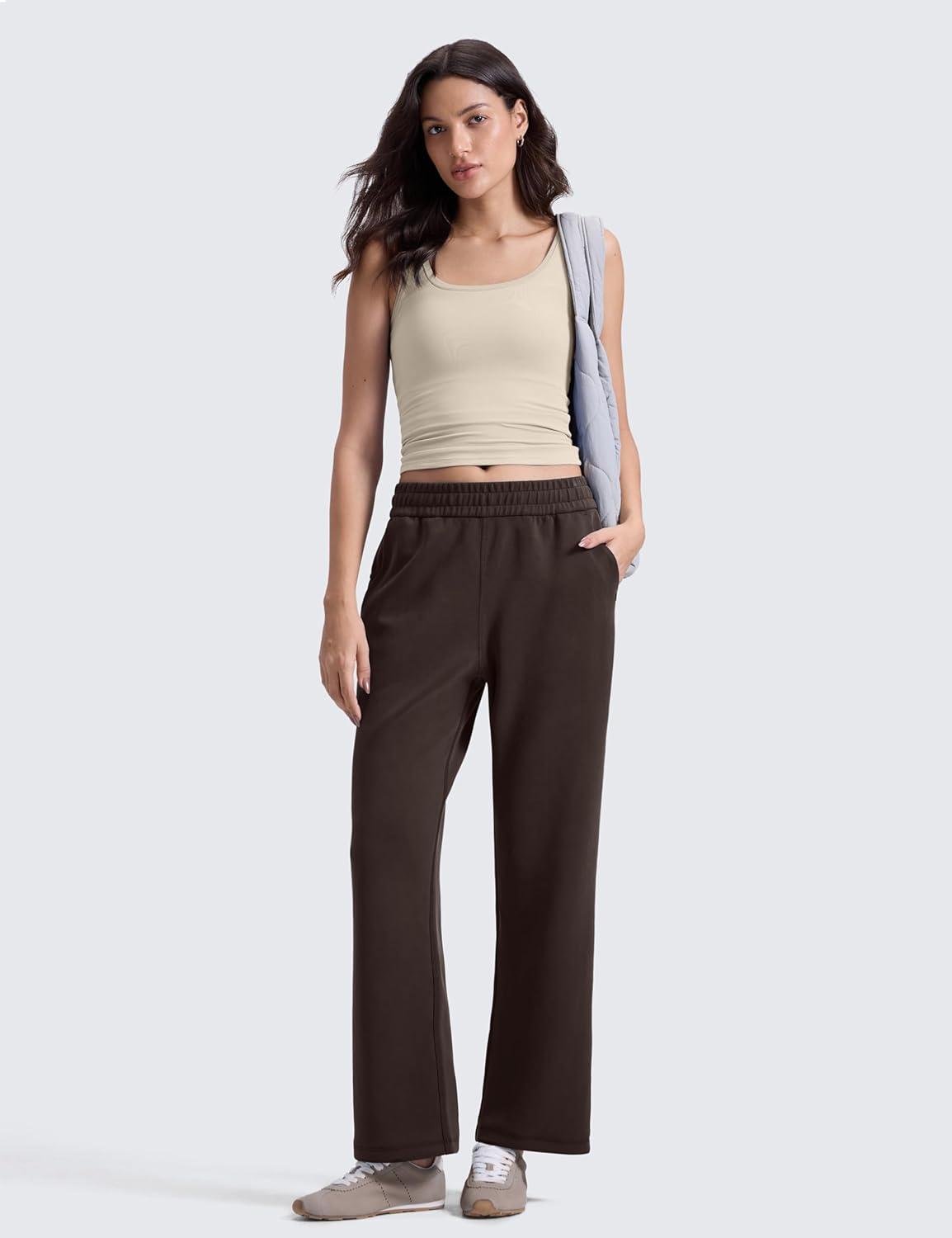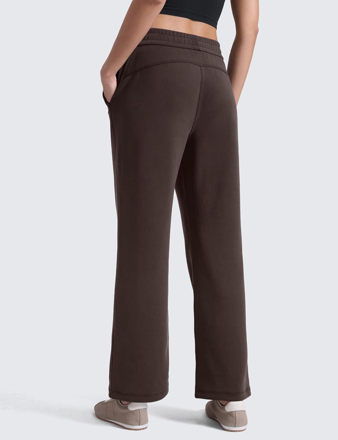 CRZ YOGA SoftAura Wide Leg Sweatpants Women 31″ Modal High Waisted Lounge Travel Casual Sweat Pants with Pockets Drawstring(Hot Fudge Brown)