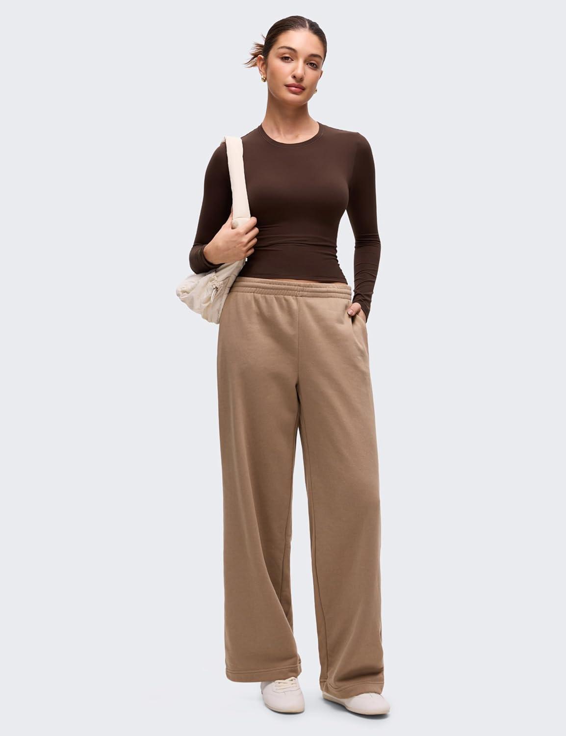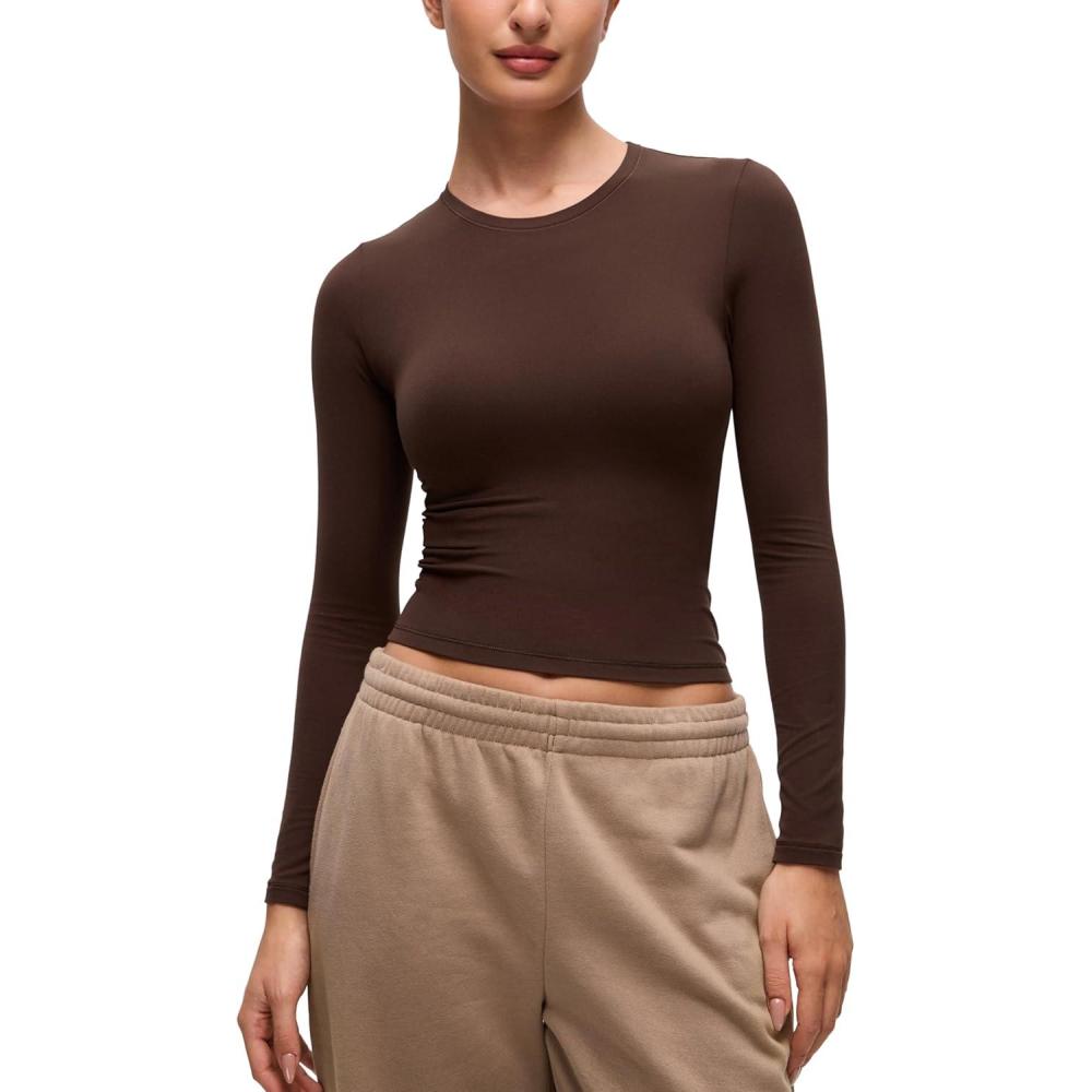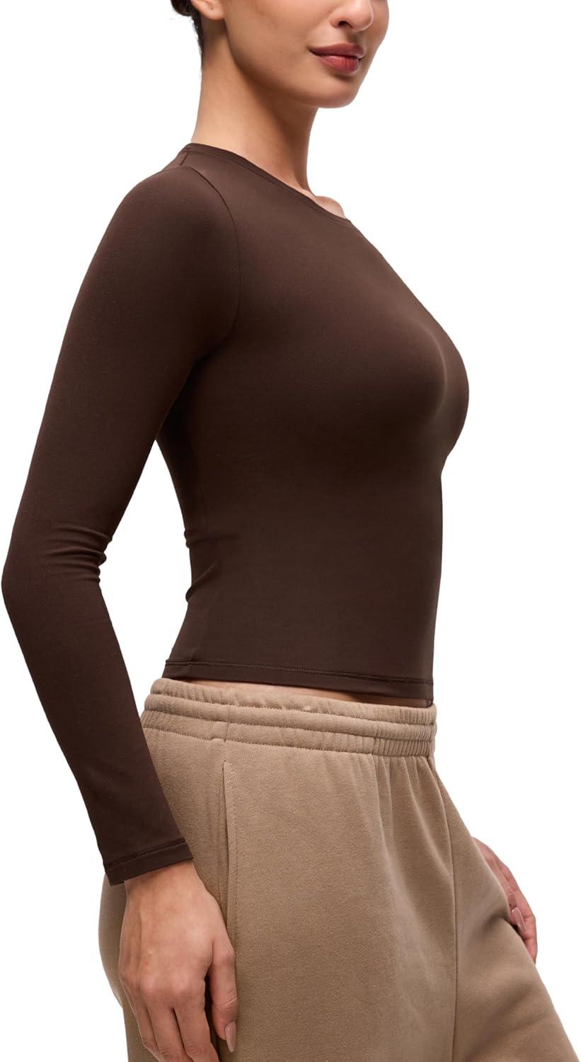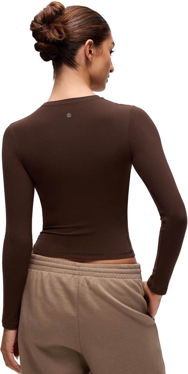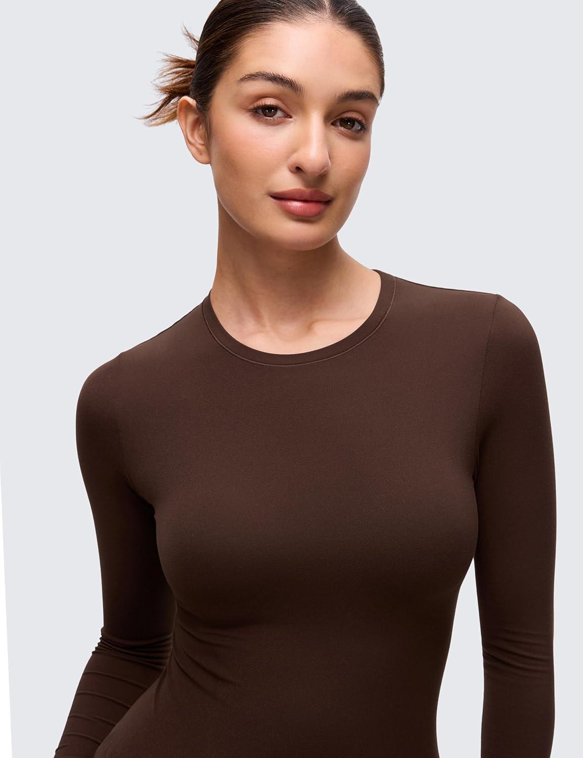 CRZ YOGA Softembrace Crewneck Long Sleeve Shirts for Women – Casual Going Out Tops Soft Basic Fitted Tight Fall T-Shirts(Lava Brown)