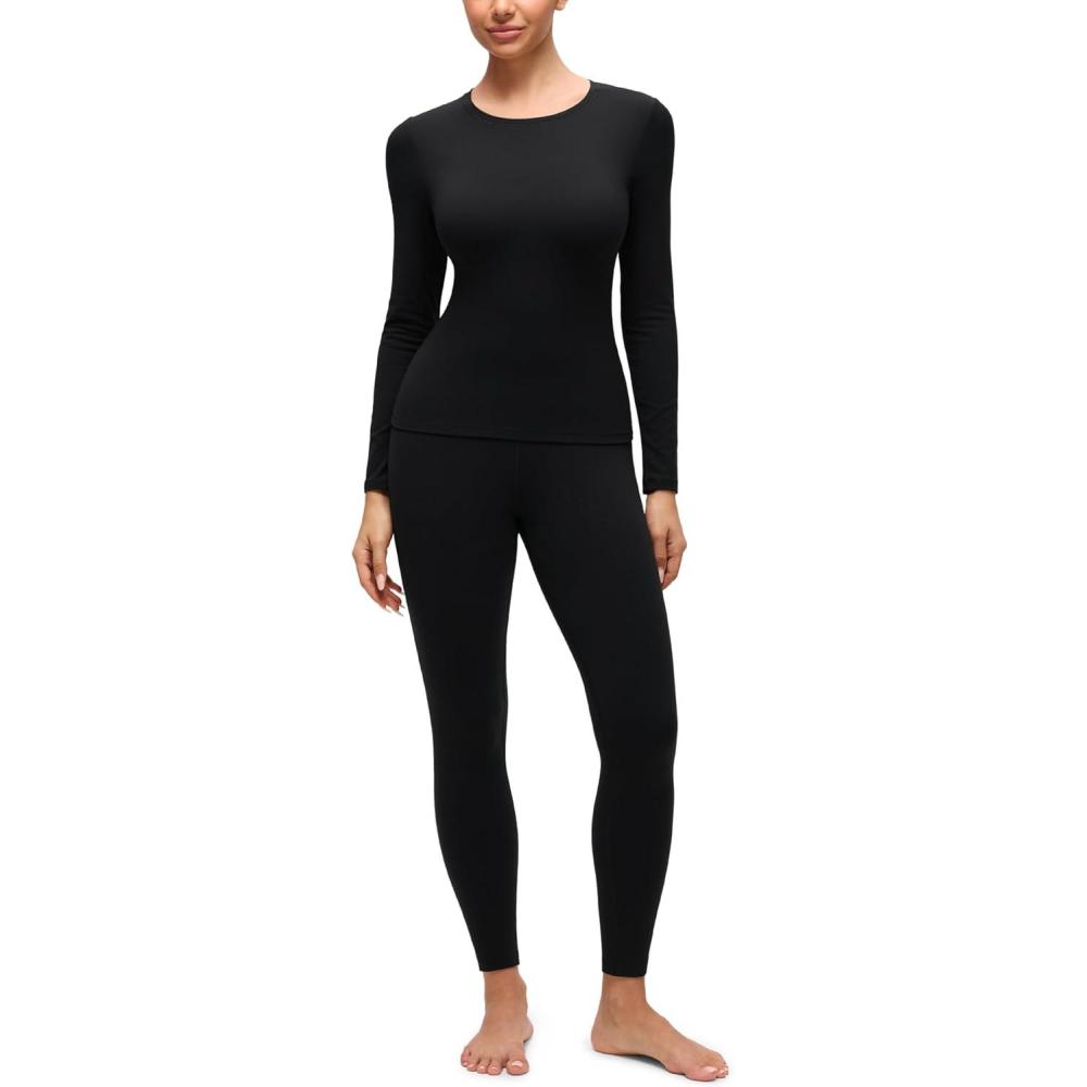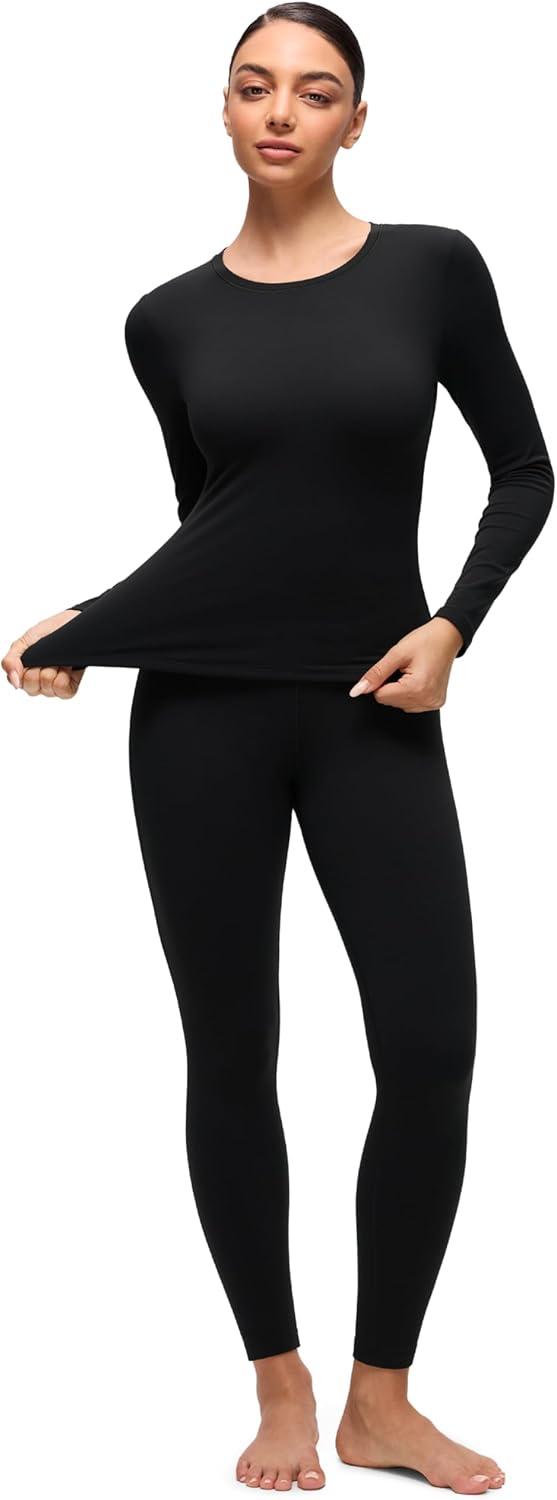 imageCRZ YOGA Softembrace Fleece Lined Thermal Underwear Set for Women  Soft Casual Base Layer Long Johns Warm Pajamas Top BottomBlack