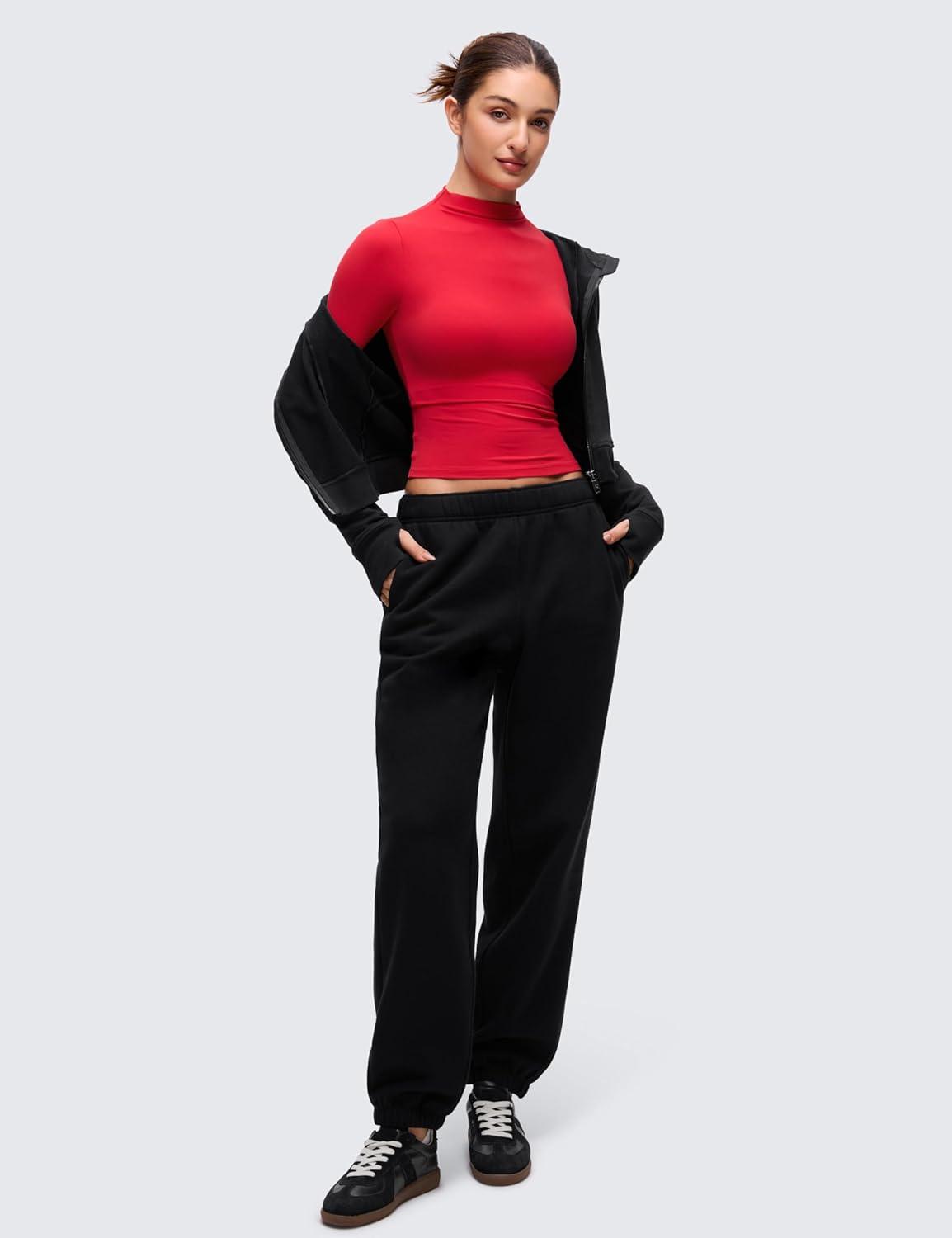 CRZ YOGA Softembrace Mock Neck Long Sleeve Tops for Women Soft Fitted Going Out Shirts Casual Comfort Layer Tees(Black)