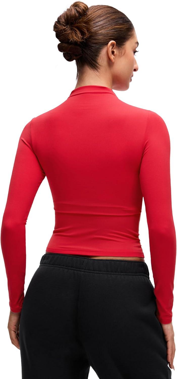 CRZ YOGA Softembrace Mock Neck Long Sleeve Tops for Women Soft Fitted Going Out Shirts Casual Comfort Layer Tees(Aurora Red)