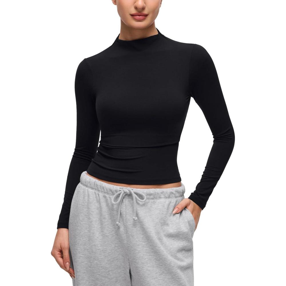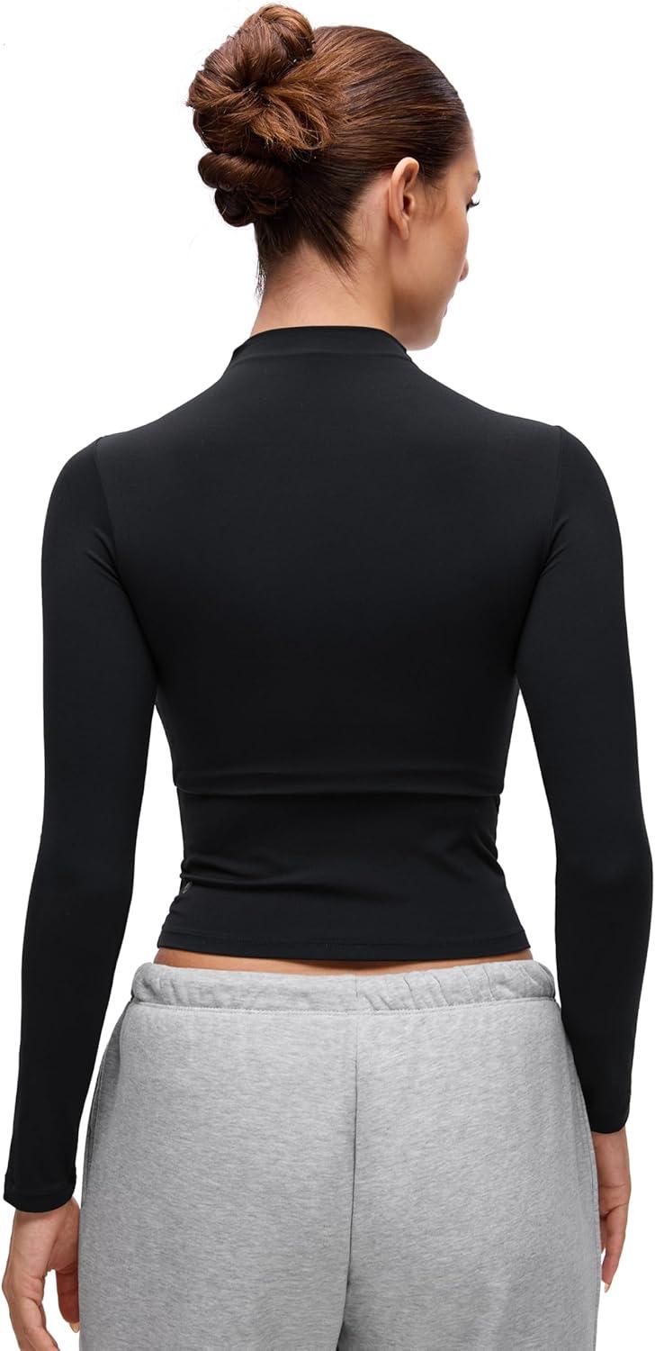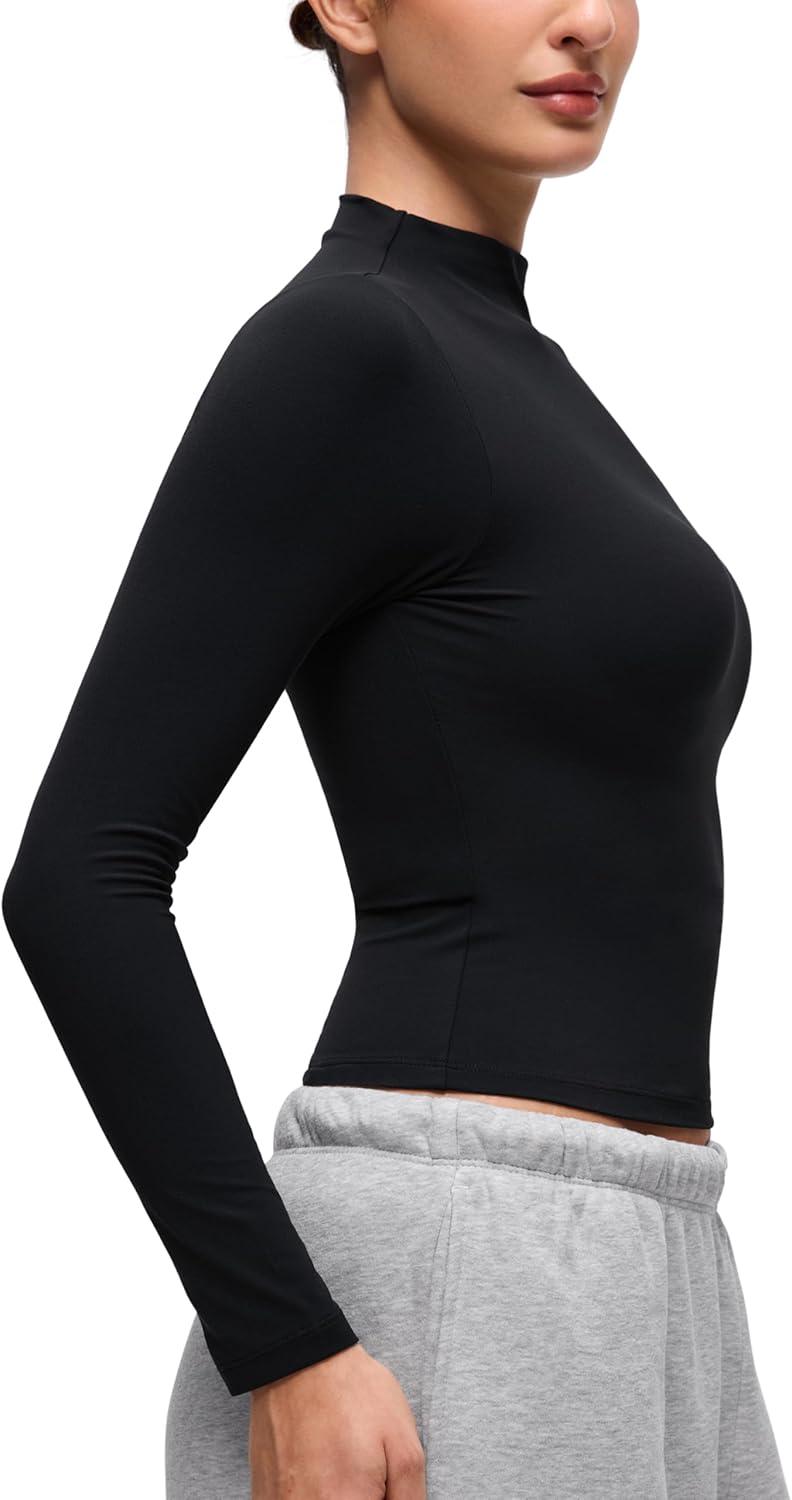 Softembrace collection features soft against skin with stretch and decent support, ideal essentials for everyone. Flattering mock neck top offers a second-skin feel, perfect for layering or stylish outerwear. Ultra soft and stretchy.