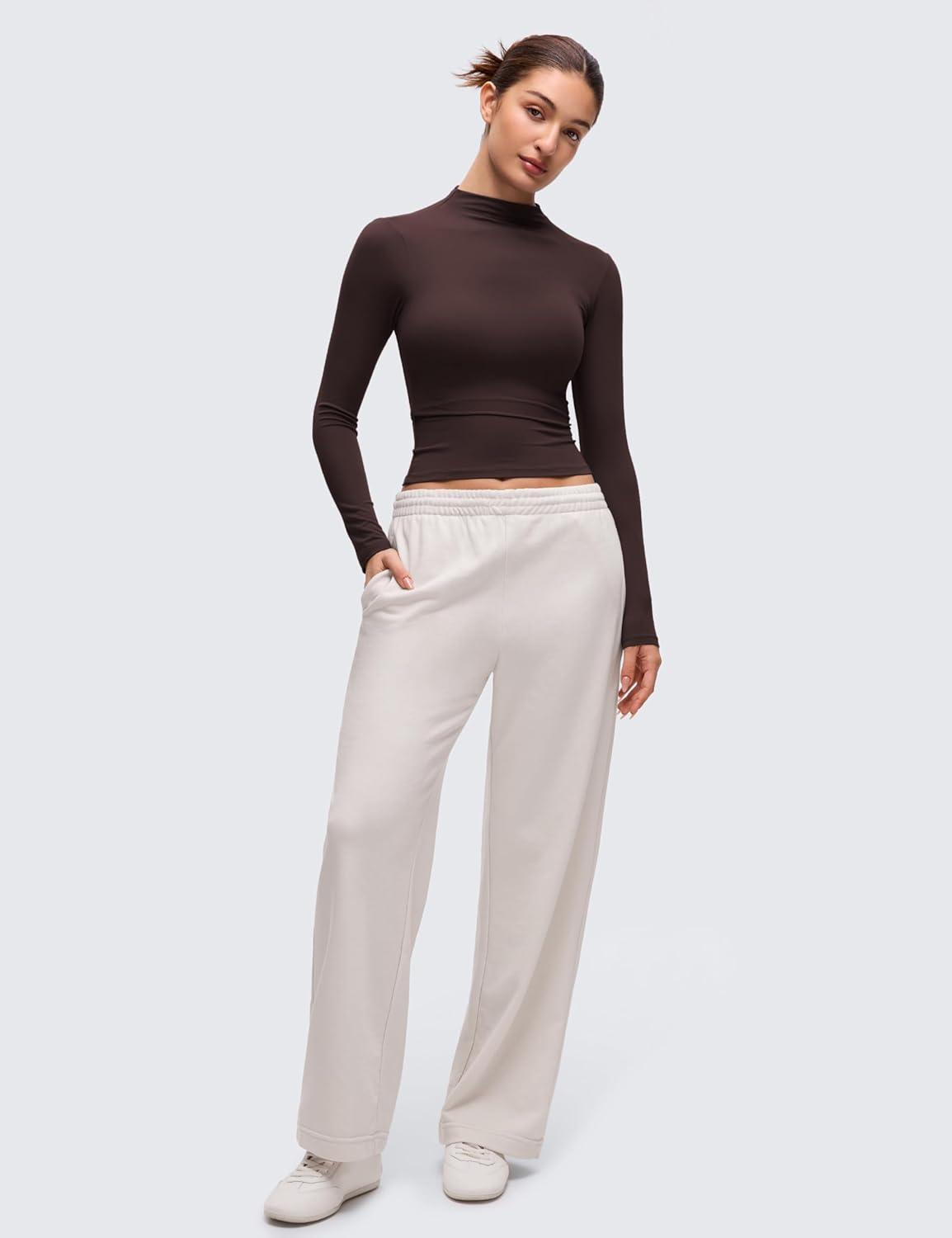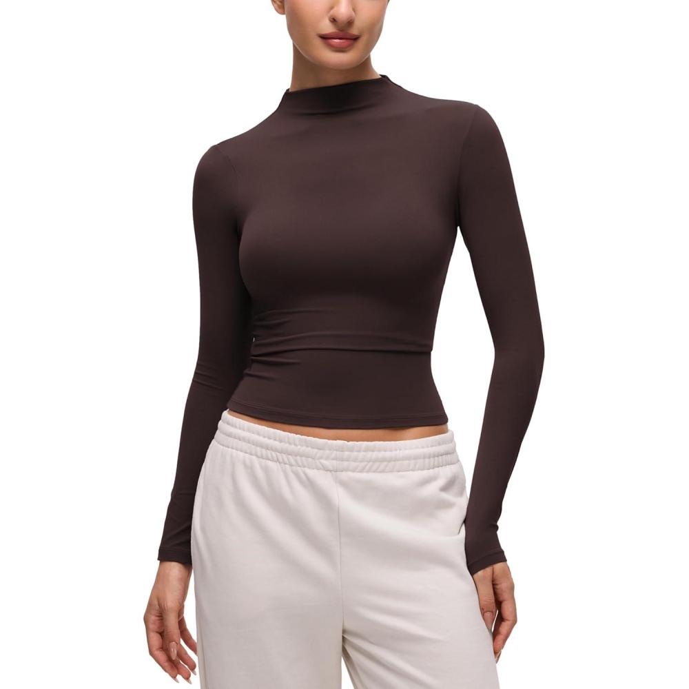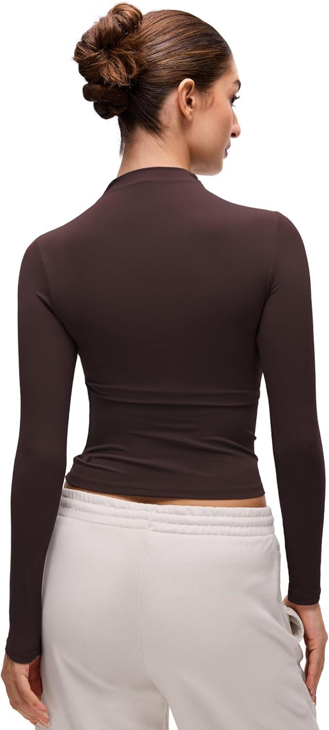 CRZ YOGA Softembrace Mock Neck Long Sleeve Tops for Women Soft Fitted Going Out Shirts Casual Comfort Layer Tees(Hot Fudge Brown)