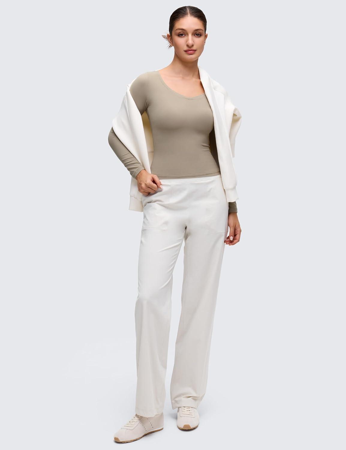 CRZ YOGA Softembrace V Neck Long Sleeve Shirts for Women – Casual Going Out Soft Comfort Tops Fitted Sexy Scoop Tees(White)