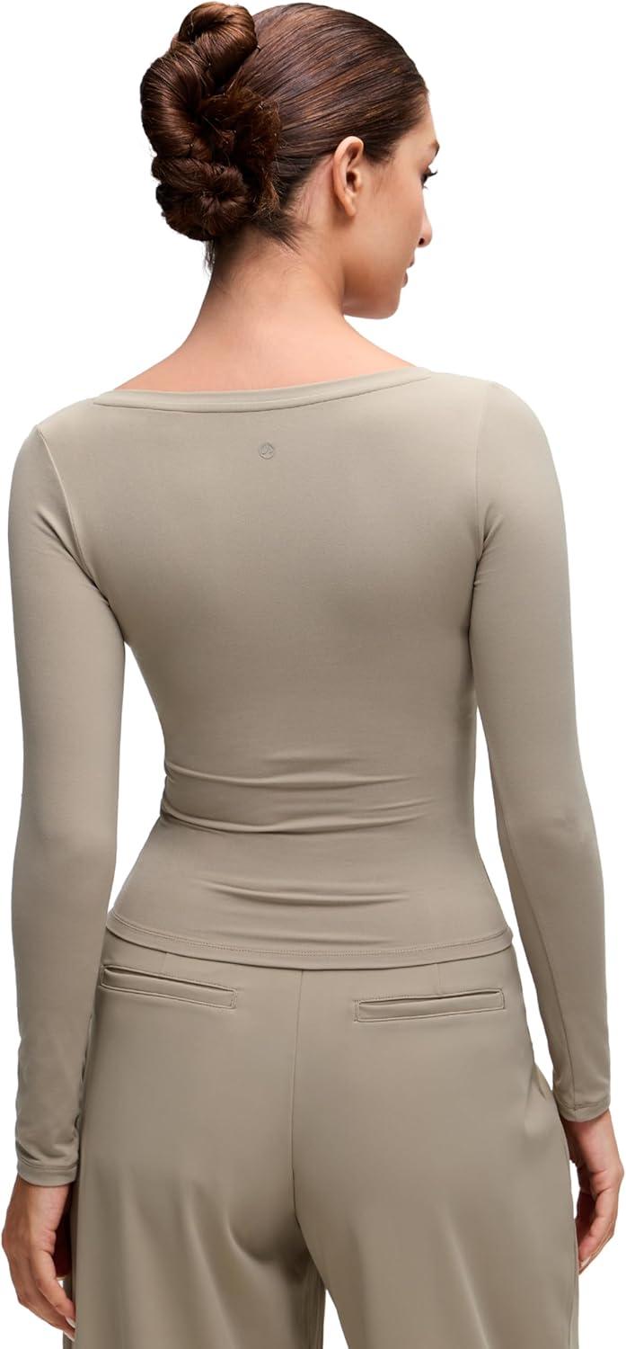 CRZ YOGA Softembrace V Neck Long Sleeve Shirts for Women - Casual Going Out Soft Comfort Tops Fitted Sexy Scoop Tees(Oak)