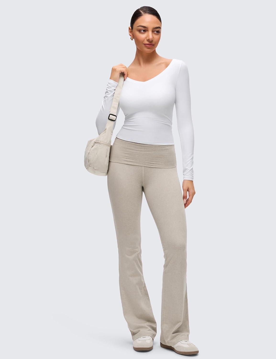 CRZ YOGA Softembrace V Neck Long Sleeve Shirts for Women – Casual Going Out Soft Comfort Tops Fitted Sexy Scoop Tees(Oak)