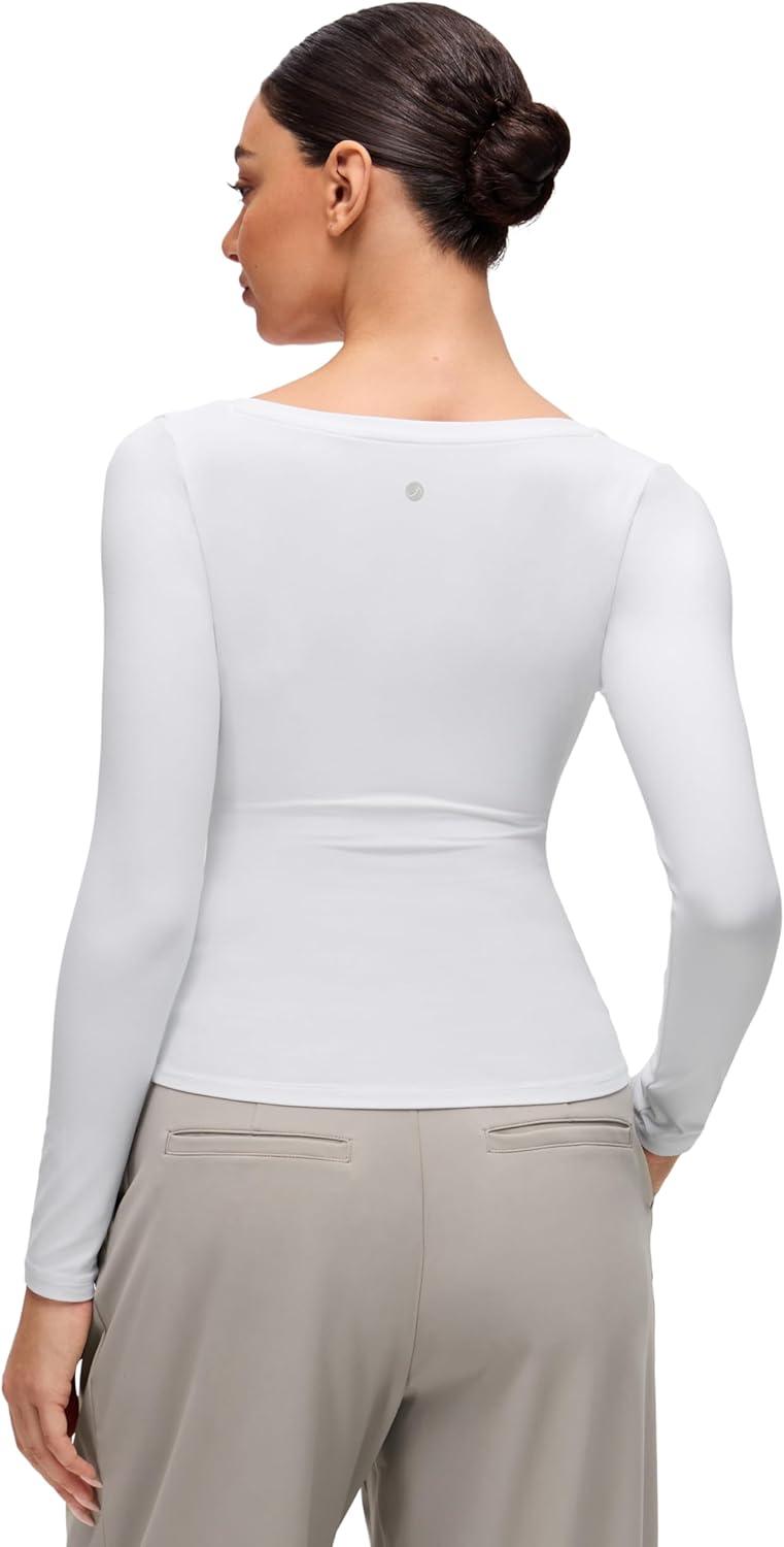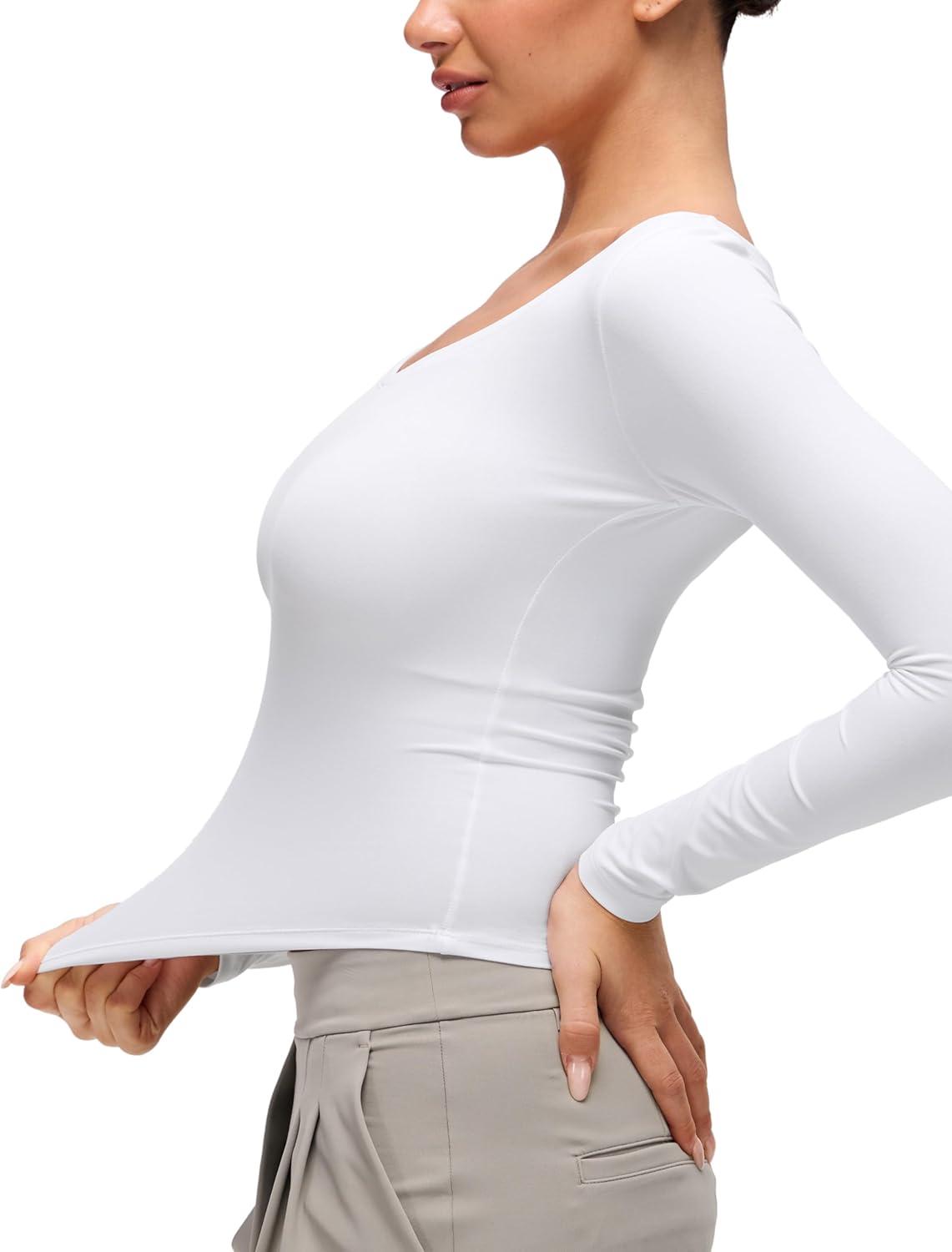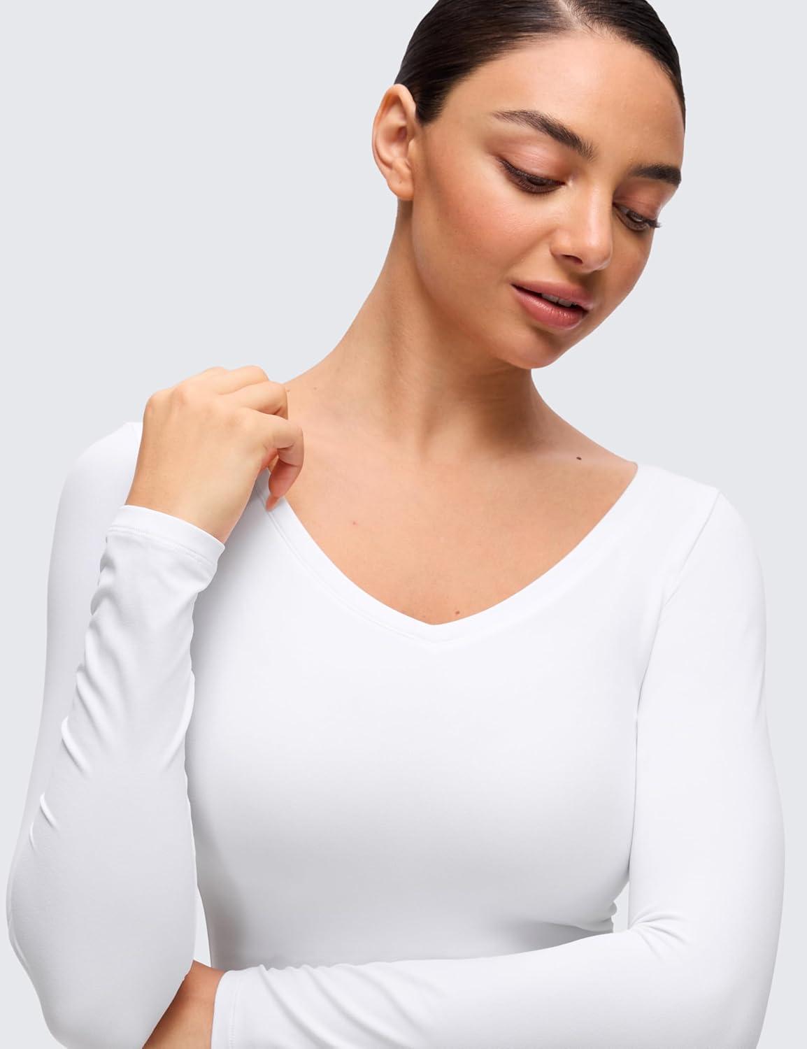 CRZ YOGA Softembrace V Neck Long Sleeve Shirts for Women – Casual Going Out Soft Comfort Tops Fitted Sexy Scoop Tees(White)