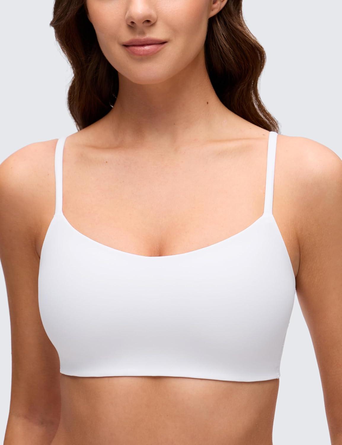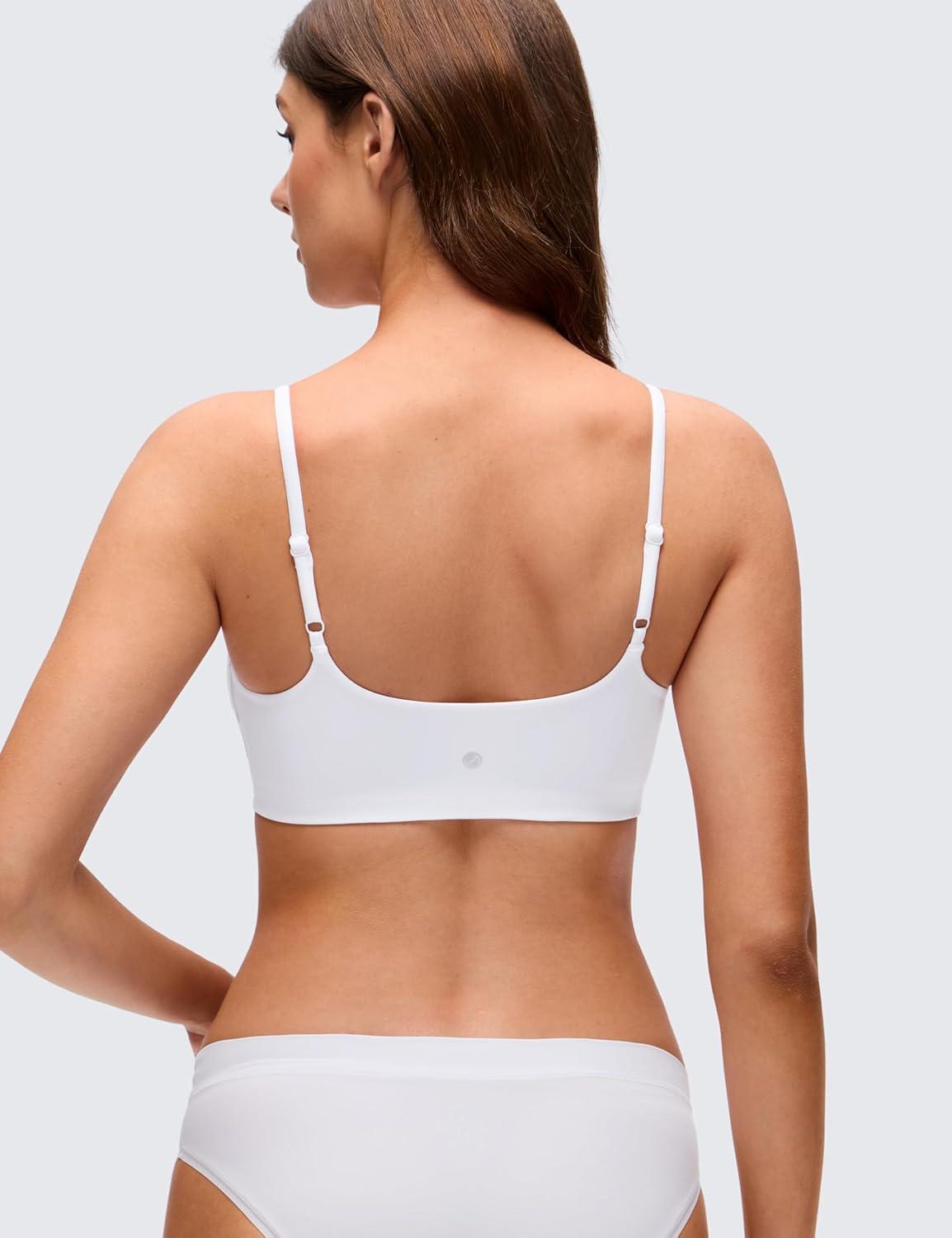 imageCRZ YOGA Softhold Mold V Neck Bralette for Women  Adjustable Spaghetti Lounge TShirt Everyday Bra No Underwire Comfort CamiSnow White