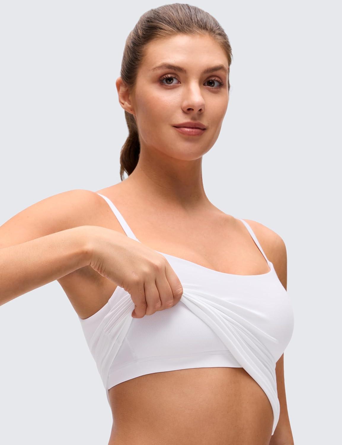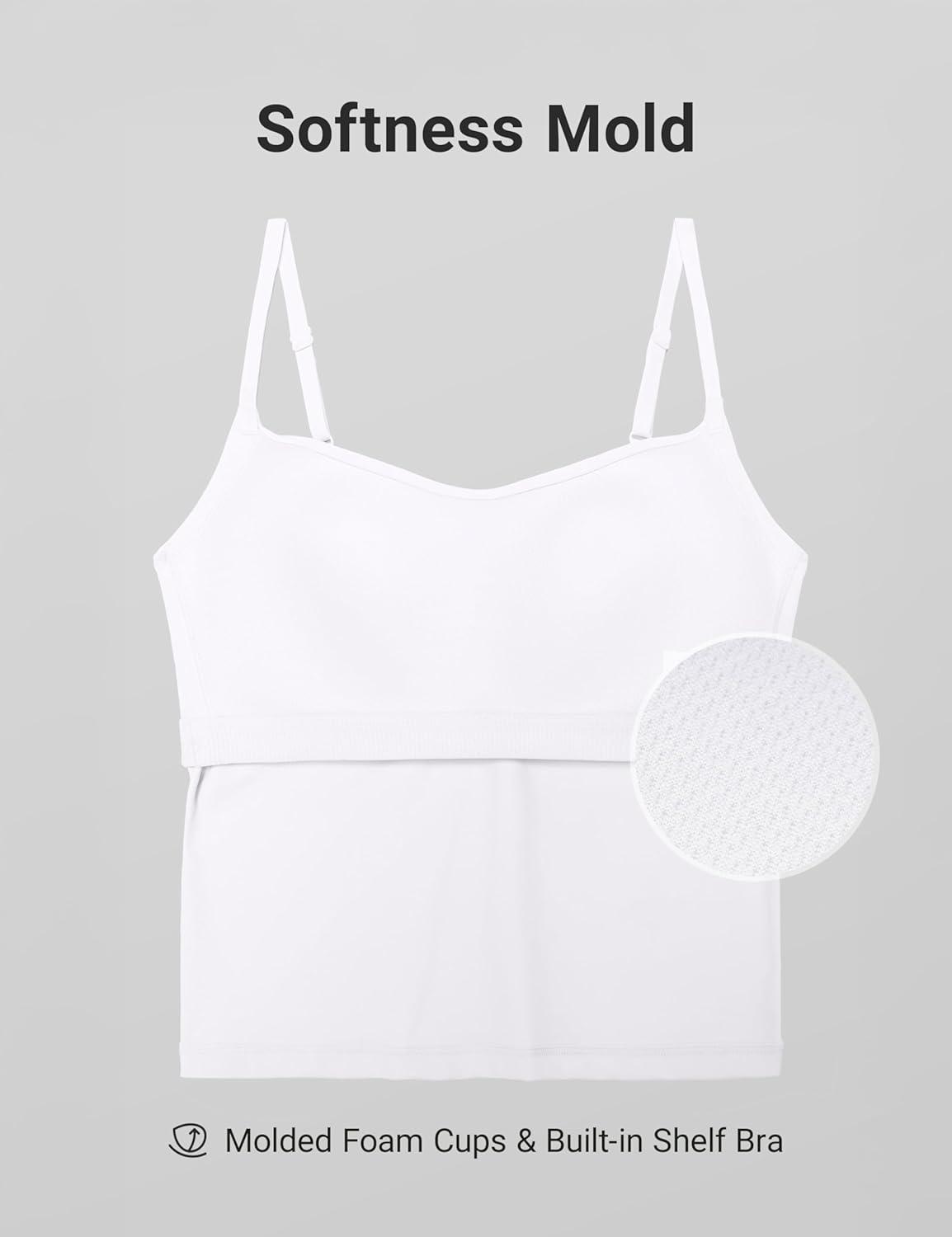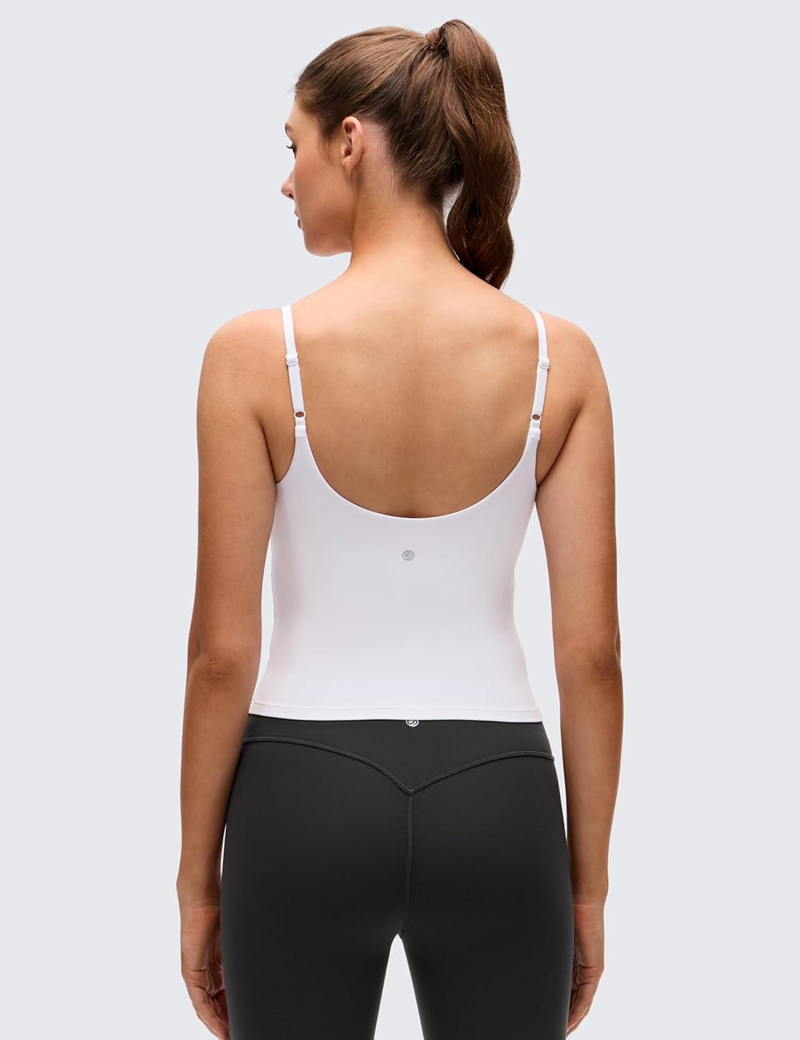 CRZ YOGA Softness Mold Butterluxe Adjustable Strap Tank Top for Women – Crop Camisole Workout Shirt with Built in Shelf Bra(White)