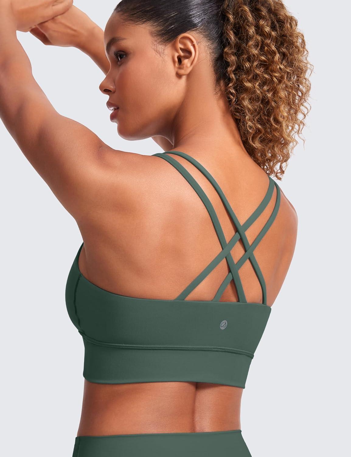 imageCRZ YOGA Softness Mold Butterluxe Strappy Sports Bras for Women  Double Spaghetti Strap Longline Workout Yoga Crop TopDark Forest Green