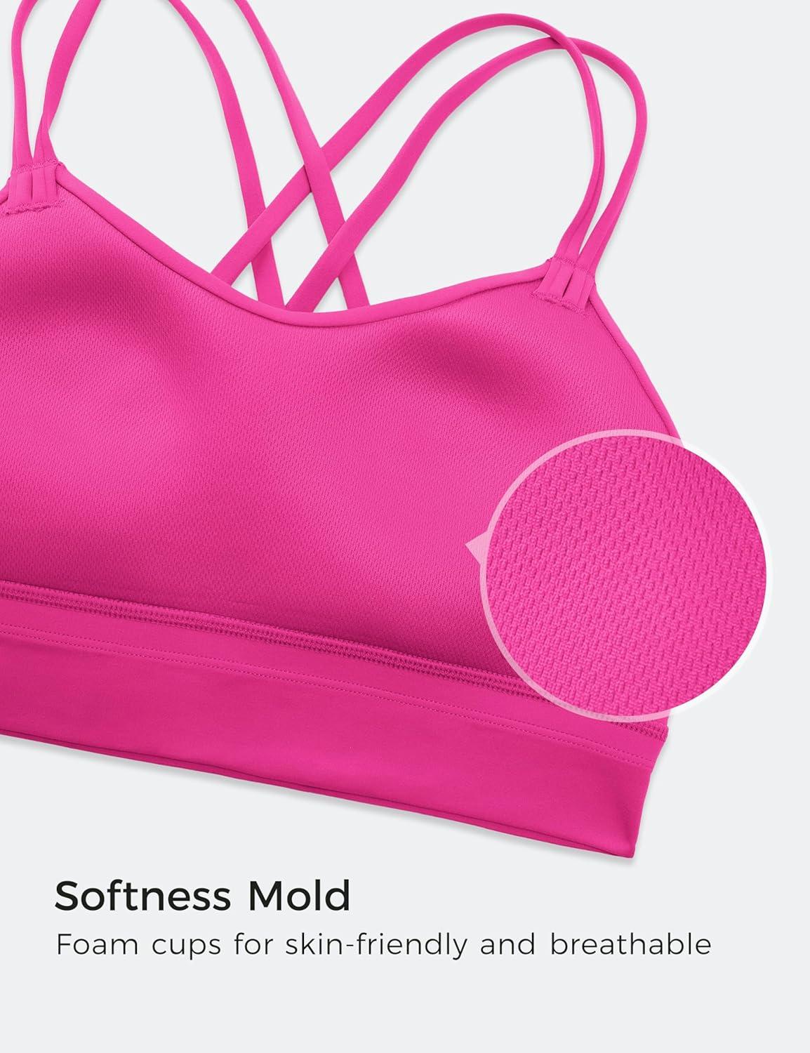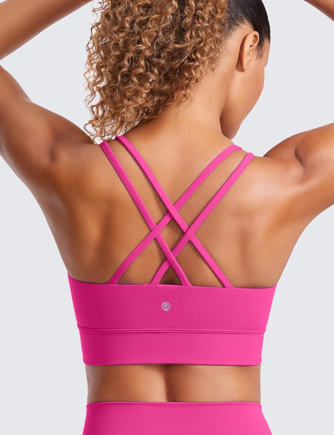 CRZ YOGA Softness Mold Butterluxe Strappy Sports Bras for Women - Double Spaghetti Strap Longline Workout Yoga Crop Top(Hibiscus Purple)