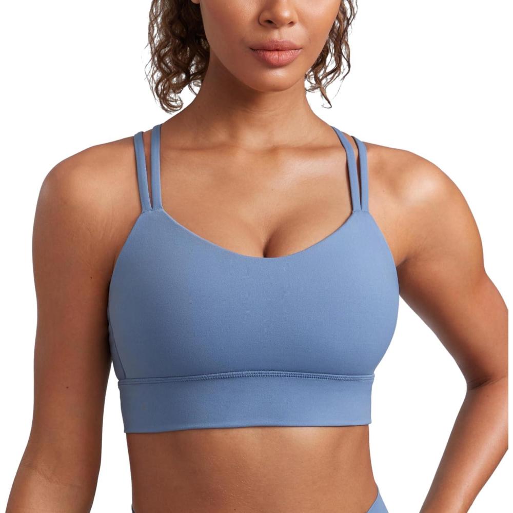 CRZ YOGA Softness Mold Butterluxe Strappy Sports Bras for Women – Double Spaghetti Strap Longline Workout Yoga Crop Top(Oasis Blue)