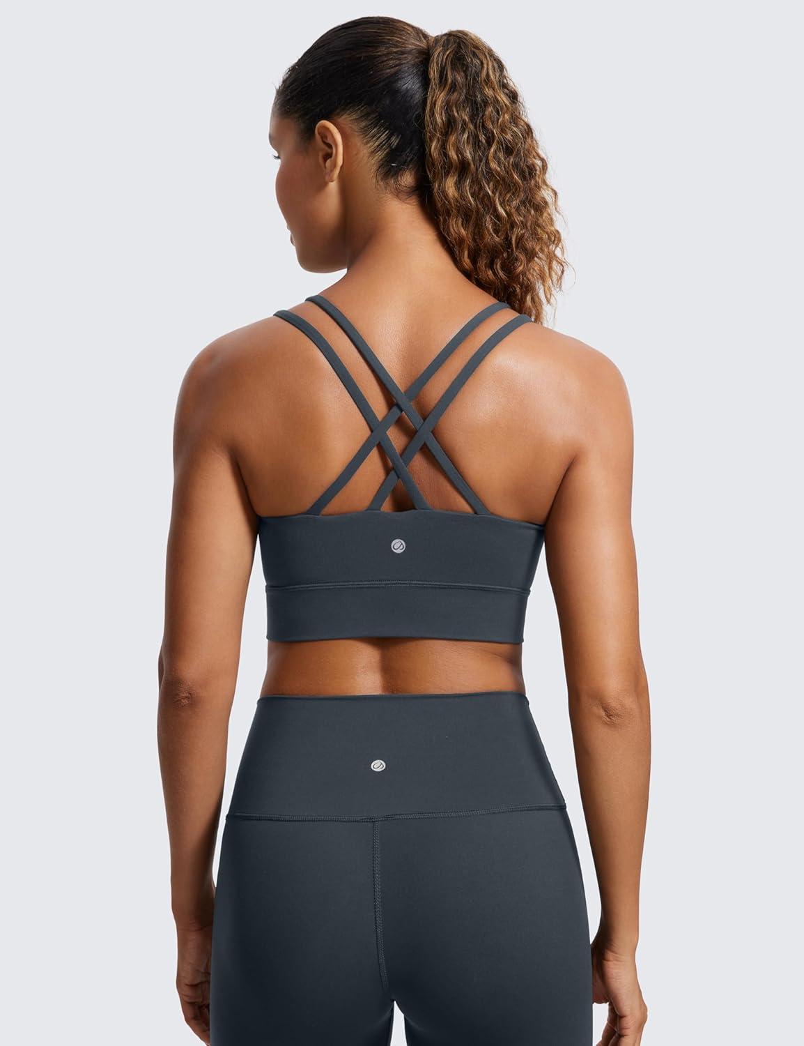 imageCRZ YOGA Softness Mold Butterluxe Strappy Sports Bras for Women  Double Spaghetti Strap Longline Workout Yoga Crop TopTrue Navy