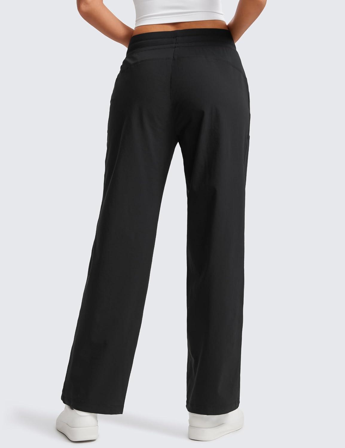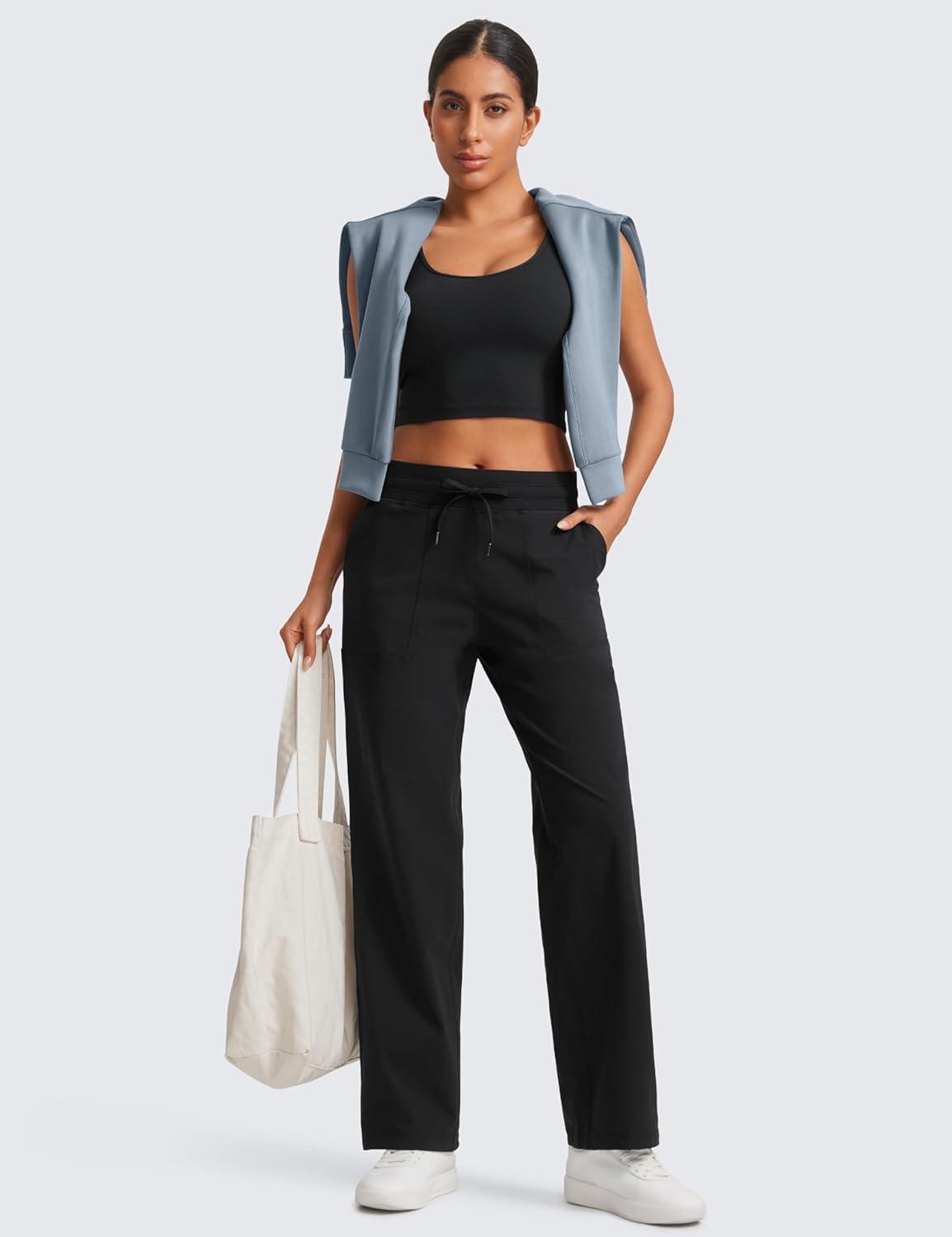 CRZ YOGA Straight Leg Casual Pants for Women 30” High Waisted Stretch Work Workout Travel Trousers with Pockets(Black)