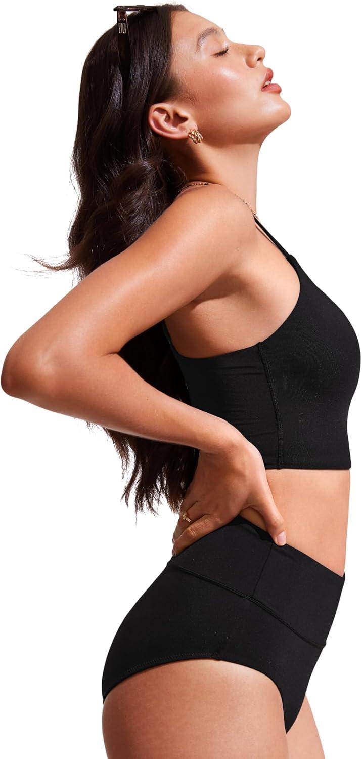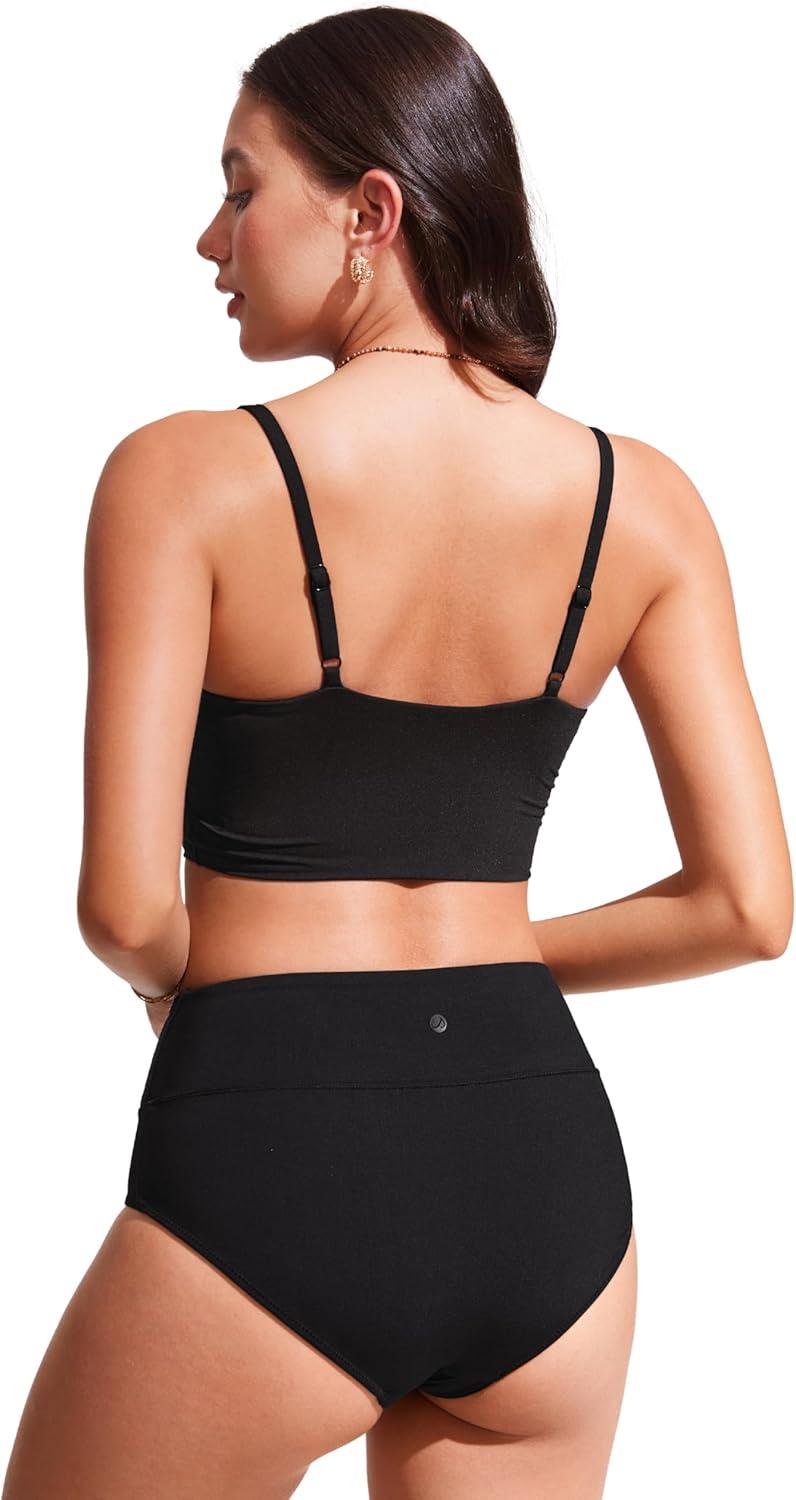 CRZ YOGA V Shaped Longline Bikini Tops for Women – Padded Cropped Adjustable Spaghetti Straps Swimsuit Athletic Bathing Suit(Black)