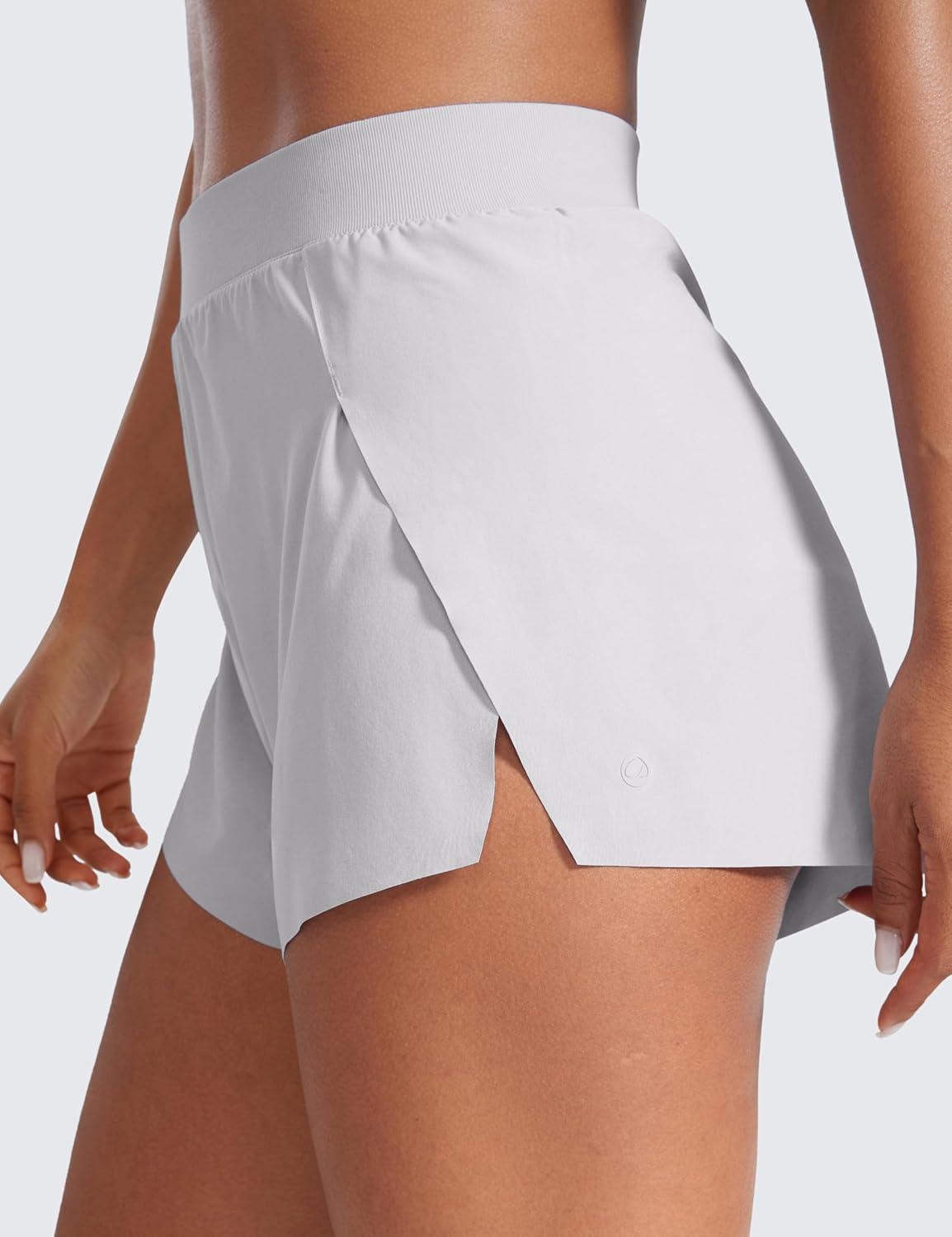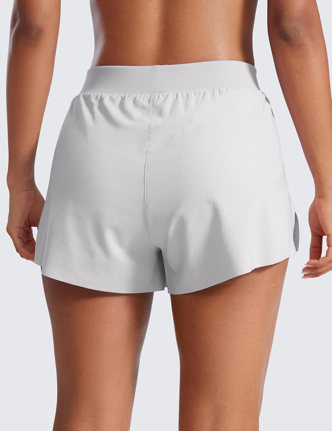 CRZ YOGA V Split Running Shorts for Women 2.5" - High Waisted Workout Athletic Gym Track with Liner Breathable Quick Dry(Platinum Grey)