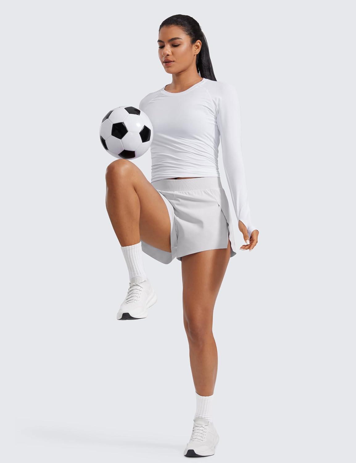 CRZ YOGA V Split Running Shorts for Women 2.5″ – High Waisted Workout Athletic Gym Track with Liner Breathable Quick Dry(Platinum Grey)