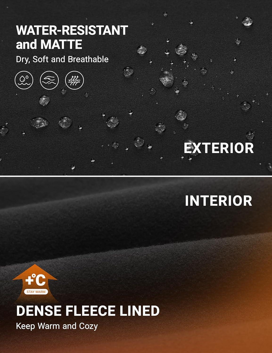 CRZ YOGA Water-Resistant Fleece Athletic Leggings Pockets 28″ – Matte Thermal Hiking Casual Workout Womens Pants(Black)