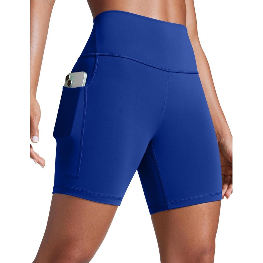 CRZ YOGA Women Butterbreeze Athletic Biker Shorts with Pockets 6” – High Waist Workout Gym Running Volleyball Yoga(True Navy)