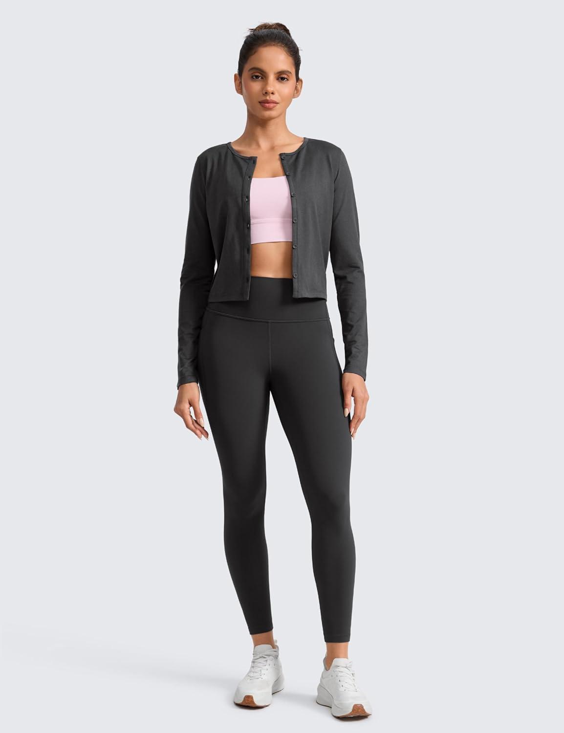 CRZ YOGA Womens Butterlift High Waist Workout Leggings with Side Pockets 25″ – Pilates Athletic Gym Yoga Pants Buttery Soft(Mysterious Grey)