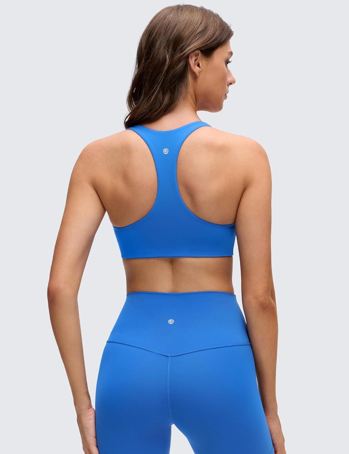 imageCRZ YOGA Womens Butterluxe V Neck Sports Bras  Supportive Racerback Wireless Padded Athletic Yoga Crop TopTrue Navy