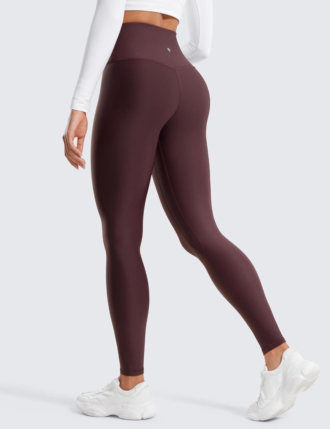 CRZ YOGA Womens Fleece Lined Leggings 28” – Casual Lounge Workout Yoga Thermal Full Length Pants Winter Warm(Arctic Plum)