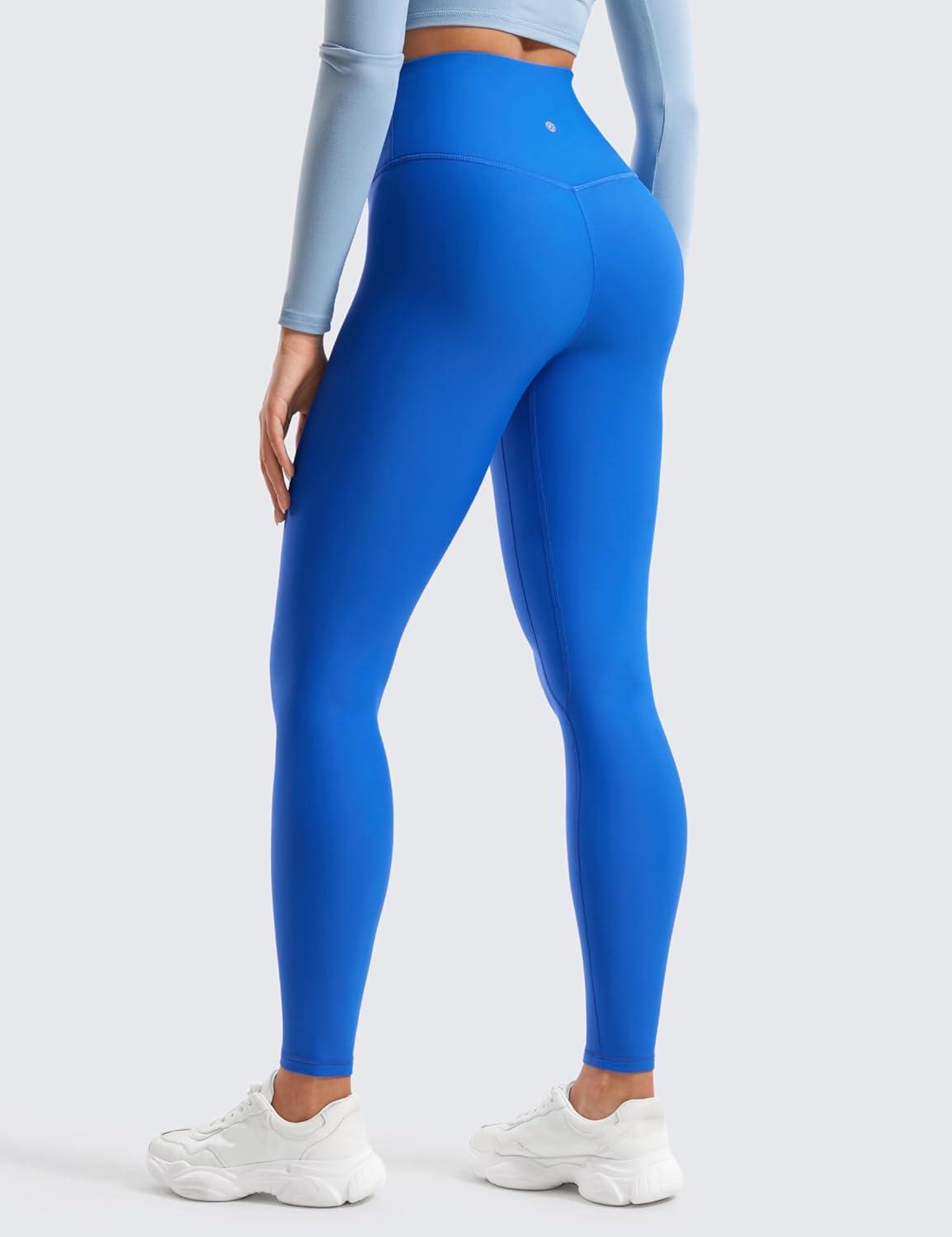 CRZ YOGA Womens Fleece Lined Leggings 28'' - Casual Lounge Workout Yoga Thermal Full Length Pants Winter Warm(Sparkle Blue)