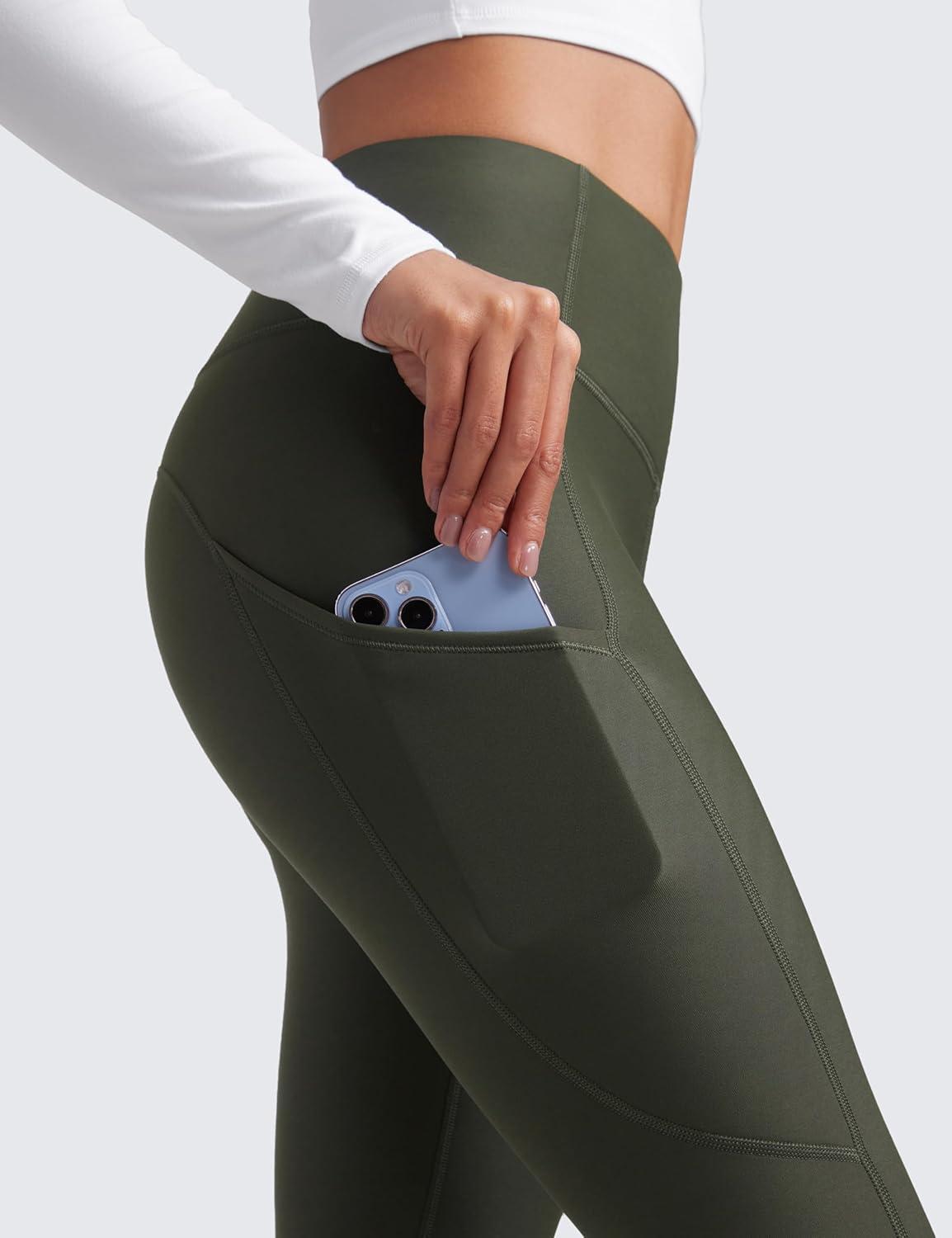 imageCRZ YOGA Womens Fleece Lined Leggings with Pockets 28  Thermal Winter Warm Full Length Pants Casual Lounge Yoga WorkoutOlive Green