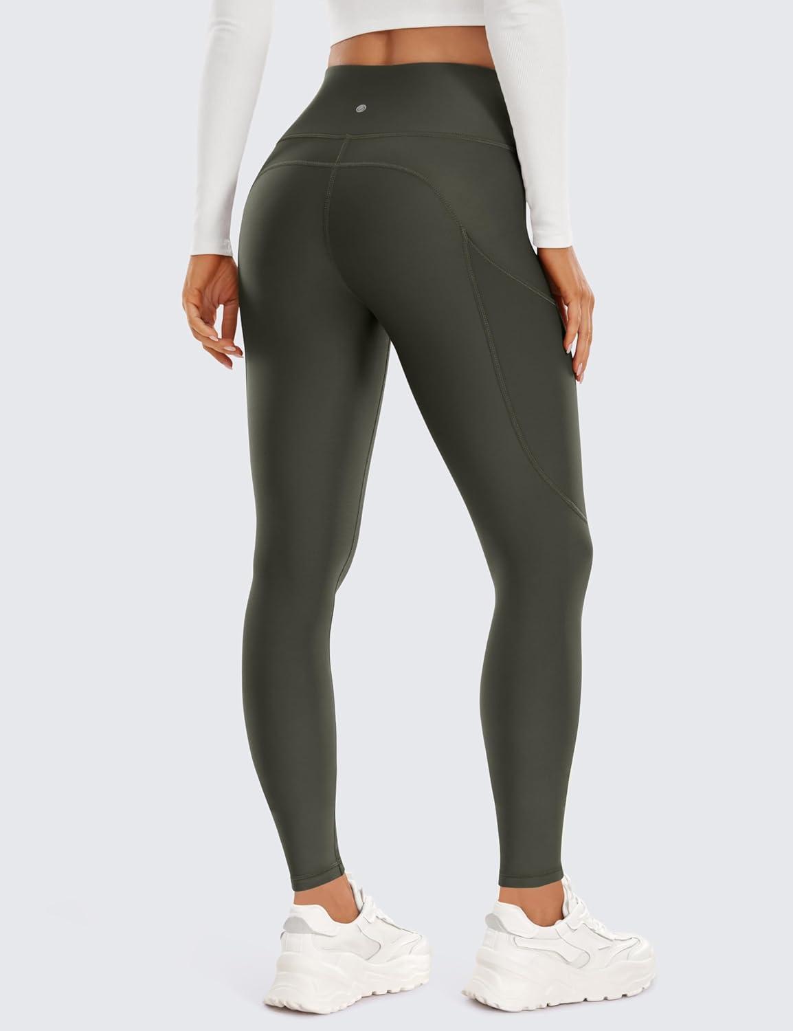CRZ YOGA Womens Fleece Lined Leggings with Pockets 28” – Thermal Winter Warm Full Length Pants Casual Lounge Yoga Workout(Olive Green)