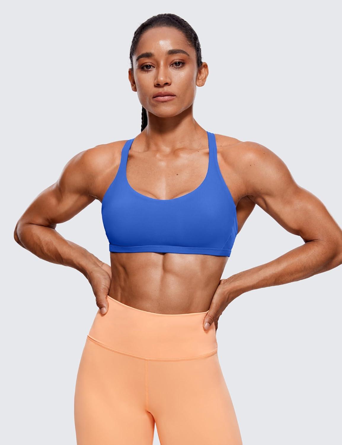 CRZ YOGA Womens Naked Feeling Criss Cross Sports Bra – Strappy Back Padded Medium Support Wireless Gym Cami Workout Yoga(Waves Blue)